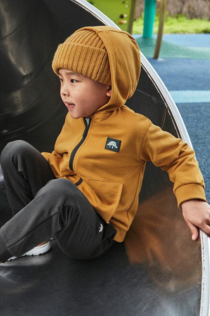 Küçük kaşiflerin maceralarına eşlik etmek için tasarlanan bu 3 parçalı eşofman takımı, konforu ve eğlenceli stili bir araya getiriyor. Birbiriyle uyumlu fermuarlı kapüşonlu hırka, uzun kollu tişört ve eşofman altından oluşan bu set, çocuğunuz için pratik ve eksiksiz bir kombin sunar. Parçaları ister bir arada ister ayrı ayrı kullanarak çok yönlü stiller yaratabilirsiniz. Yumuşak, pamuk ağırlıklı ve esnek kumaşları, gün boyu süren oyunlarda maksimum rahatlık ve hareket özgürlüğü sağlar. Dinozor temalı baskı ve armalar, tasarıma macera dolu bir dokunuş katar.