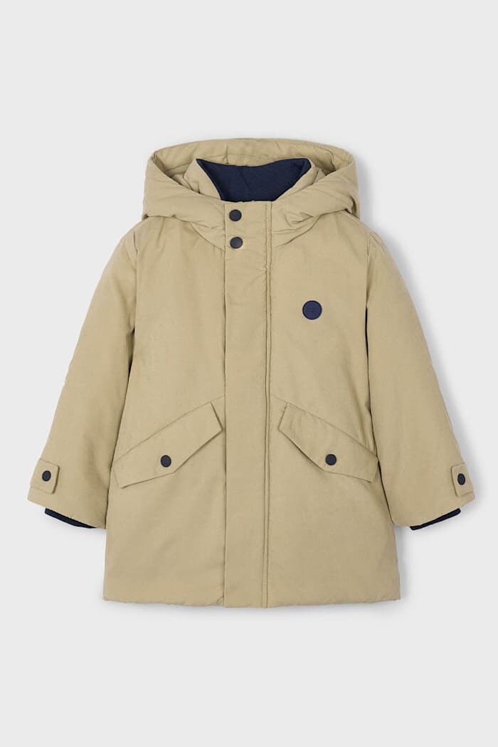 Erkek Çocuk Normal Kalıp Kapüşonlu Esnek Kumaşlı Parka - Açık Kahverengi