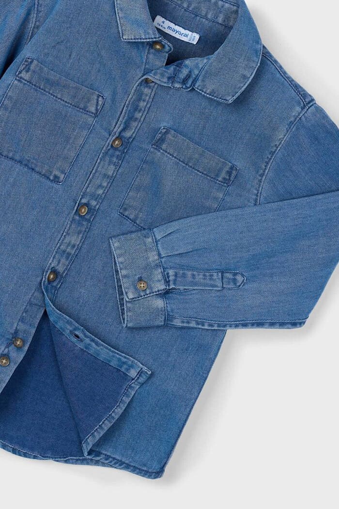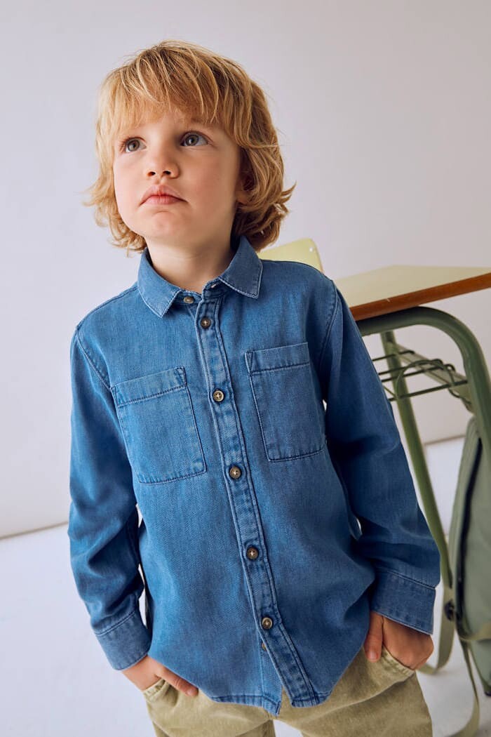 Zamansız bir stil klasiği olan bu jean gömlek, her çocuğun gardırobunda olması gereken çok yönlü bir parçadır. Pamuk ve liyosel karışımlı özel kumaşı, pamuğun dayanıklılığını liyoselin ise ultra yumuşak ve dökümlü dokusuyla birleştirerek gün boyu üstün konfor sunar. Klasik gömlek yakası, önden düğmeli kapaması ve göğüs kısmındaki çift cep detayıyla hem şık hem de fonksiyonel bir tasarıma sahiptir. Hem tek başına düğmelenerek hem de basic bir t-shirt üzerine giyilerek katmanlı bir stil oluşturmak için idealdir.