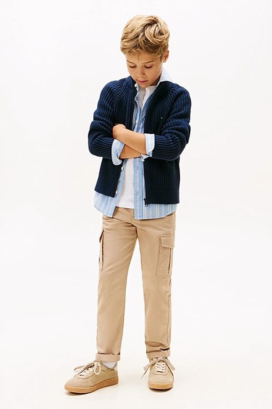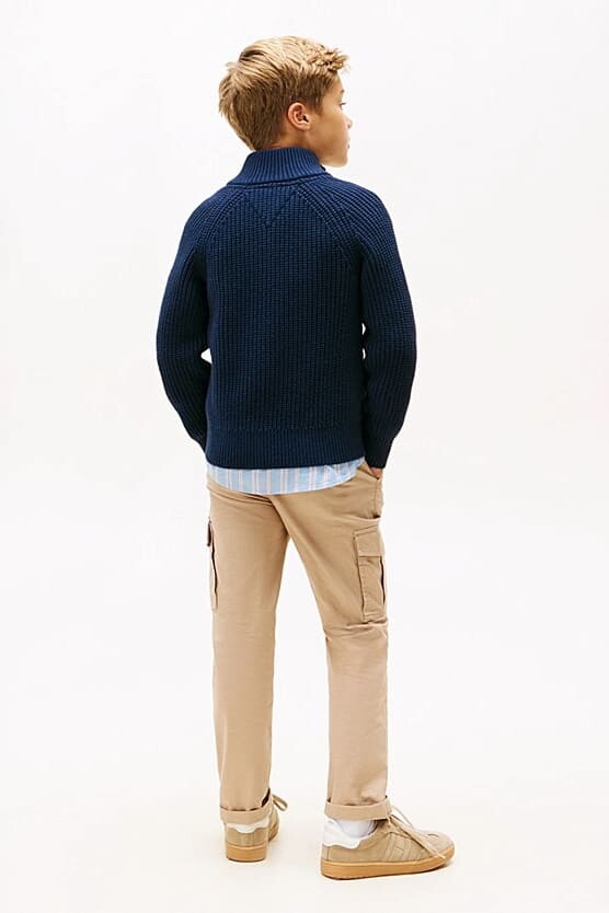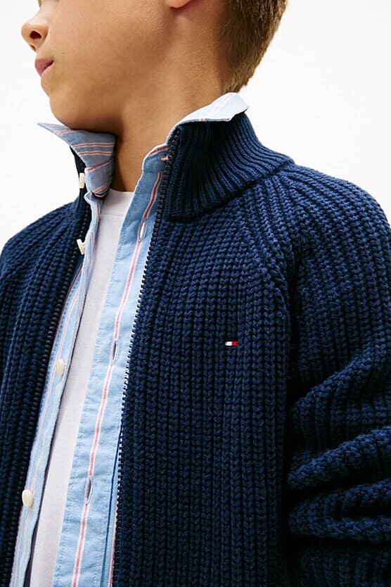Değişken havalar için mükemmel bir katman olan bu hırka, kendine özgü dokusu ve kolay giyilen fermuarlı tasarımıyla öne çıkıyor. Pamuk karışımlı iplikten, zengin dokulu bir görünüm sunan selanik örgü tekniği ile üretilmiştir. Modern yarım balıkçı yakası, regular kalıbıyla birleşerek hem sıcak tutar hem de konforlu bir kullanım sağlar. Göğüs kısmındaki küçük amblem, klasik tasarıma zarif bir dokunuş katar.