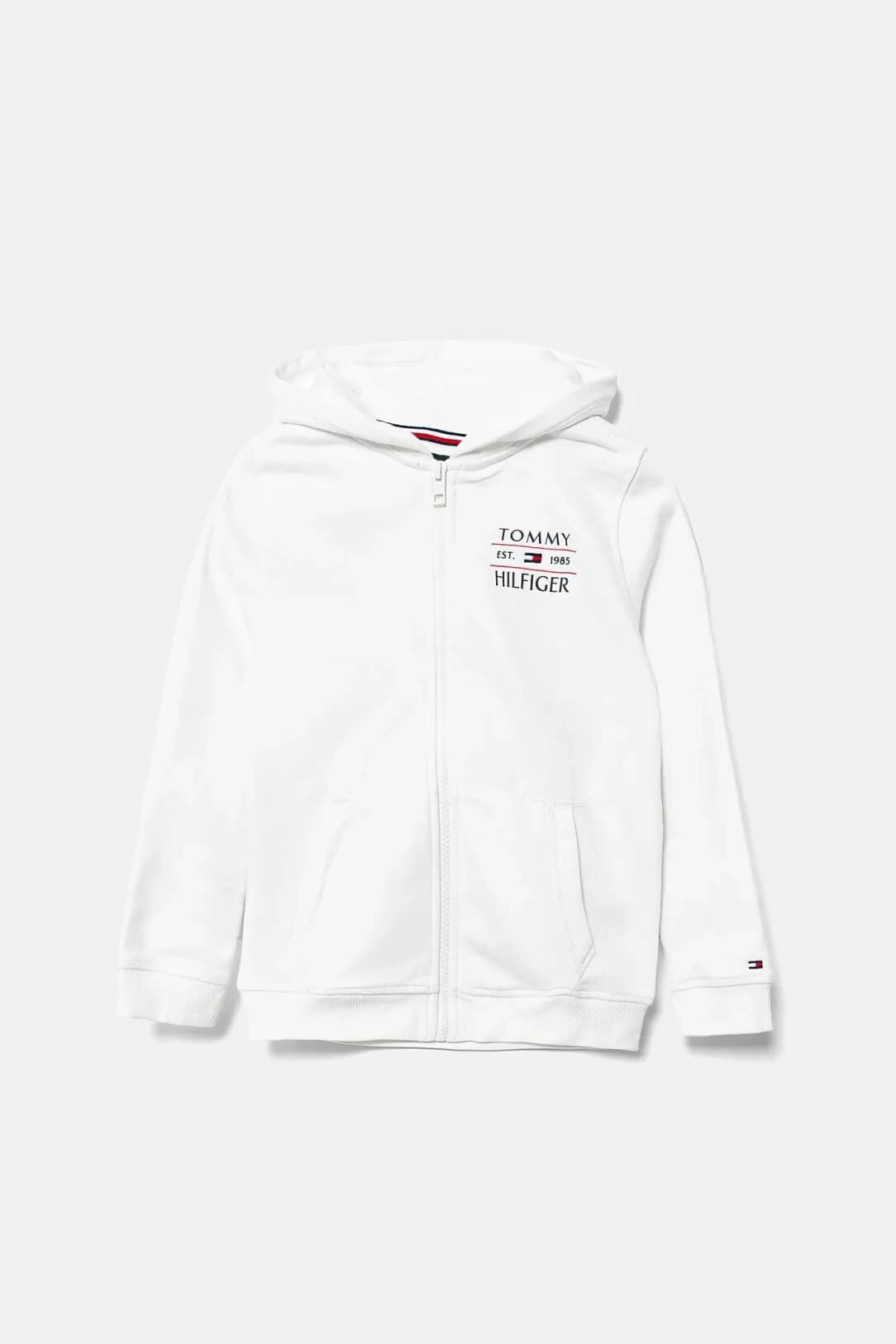 Erkek Çocuk Tommy Flag Fermuarlı Kapüşonlu Sweatshirt - Beyaz