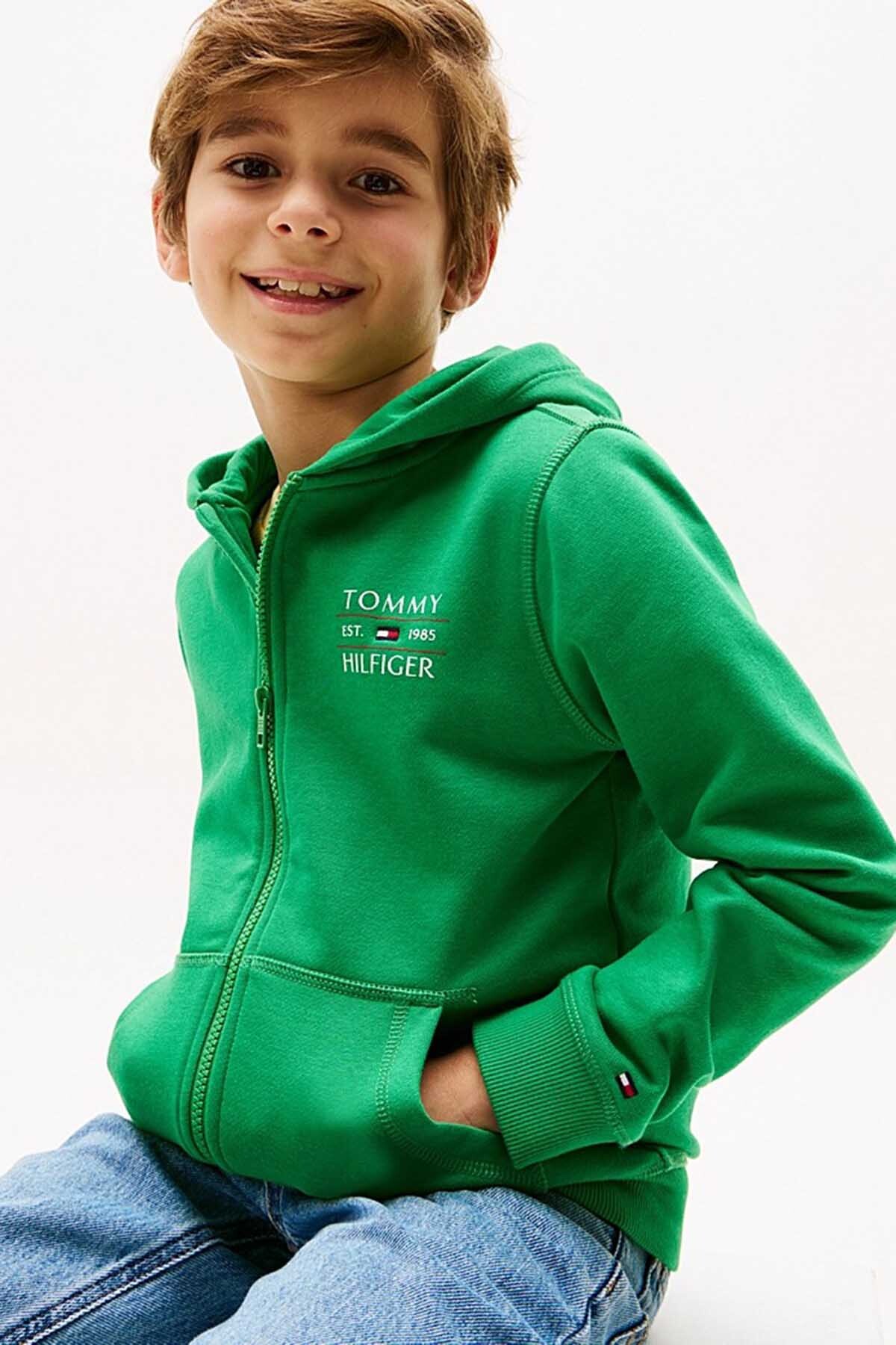 Erkek Çocuk Tommy Flag Fermuarlı Kapüşonlu Sweatshirt - Yeşil