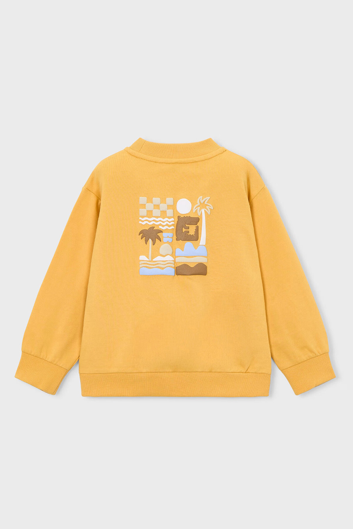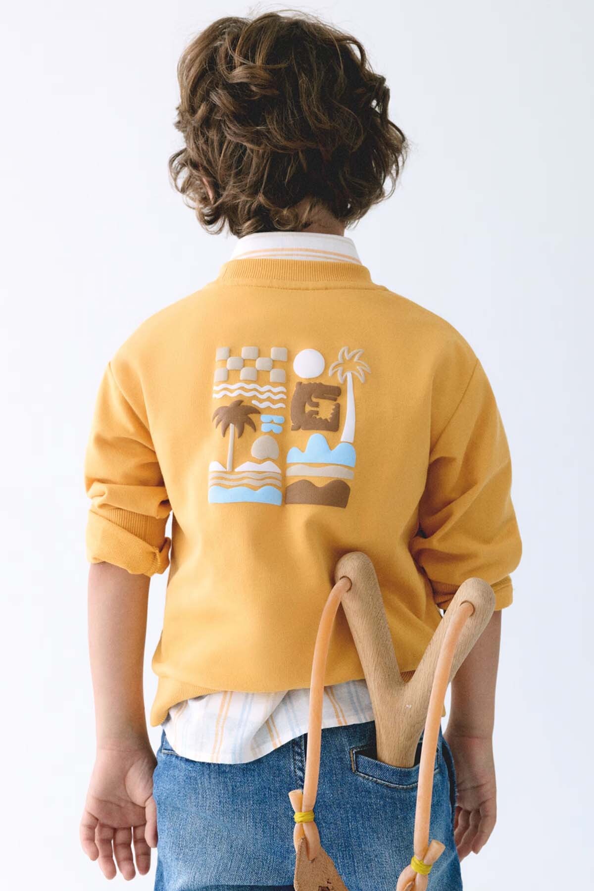 Pamuk harmanından doğan esnek ve pürüzsüz dokusu, bedeni nazikçe sararak gün boyu maksimum hareket özgürlüğü sunar. Göğüs kısmındaki minimal palmiye ağacı aplikesi ve sırtında yer alan, satranç deseniyle sörf temasını buluşturan üç boyutlu görünüme sahip dokulu illüstrasyonuyla öne çıkan bu zamansız sweatshirt, esnek fitilli yaka ve manşetleriyle kusursuz bir uyum yakalar. Serin bahar günlerinde veya yaz akşamlarında şort ve jean pantolonlarla mükemmel bir ahenk yaratarak gardırobun en prestijli ve konforlu parçası olmaya adaydır.