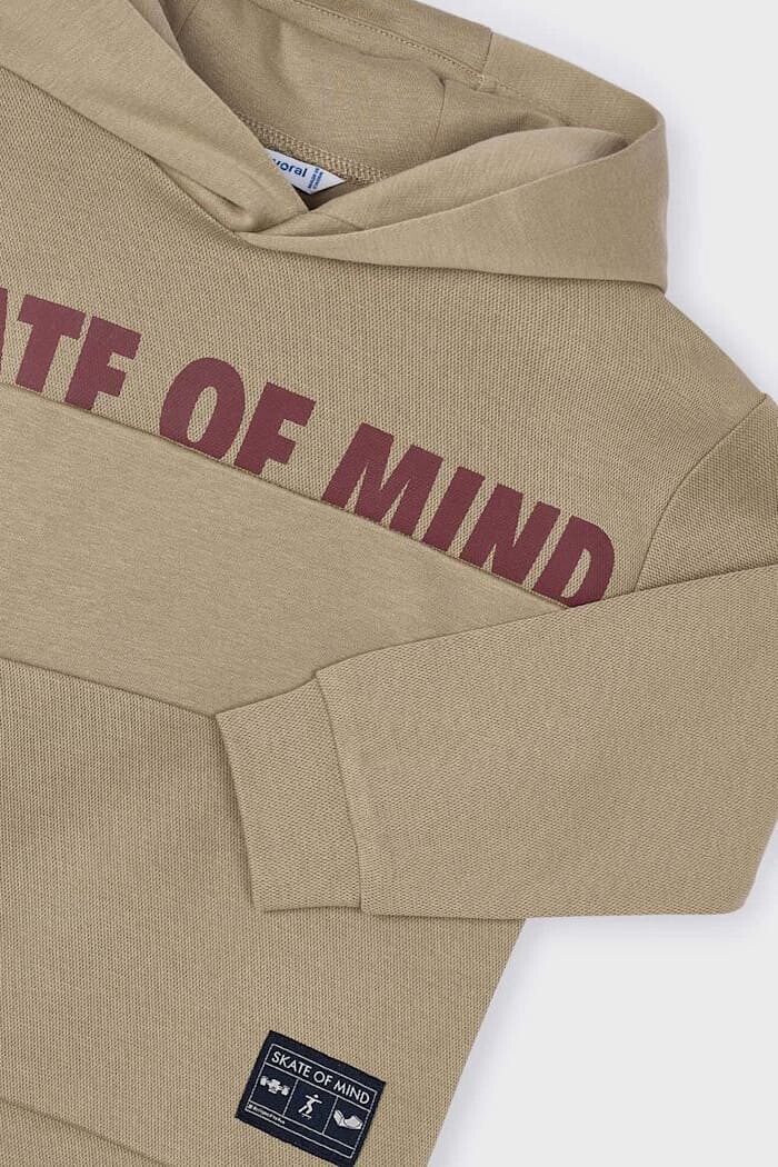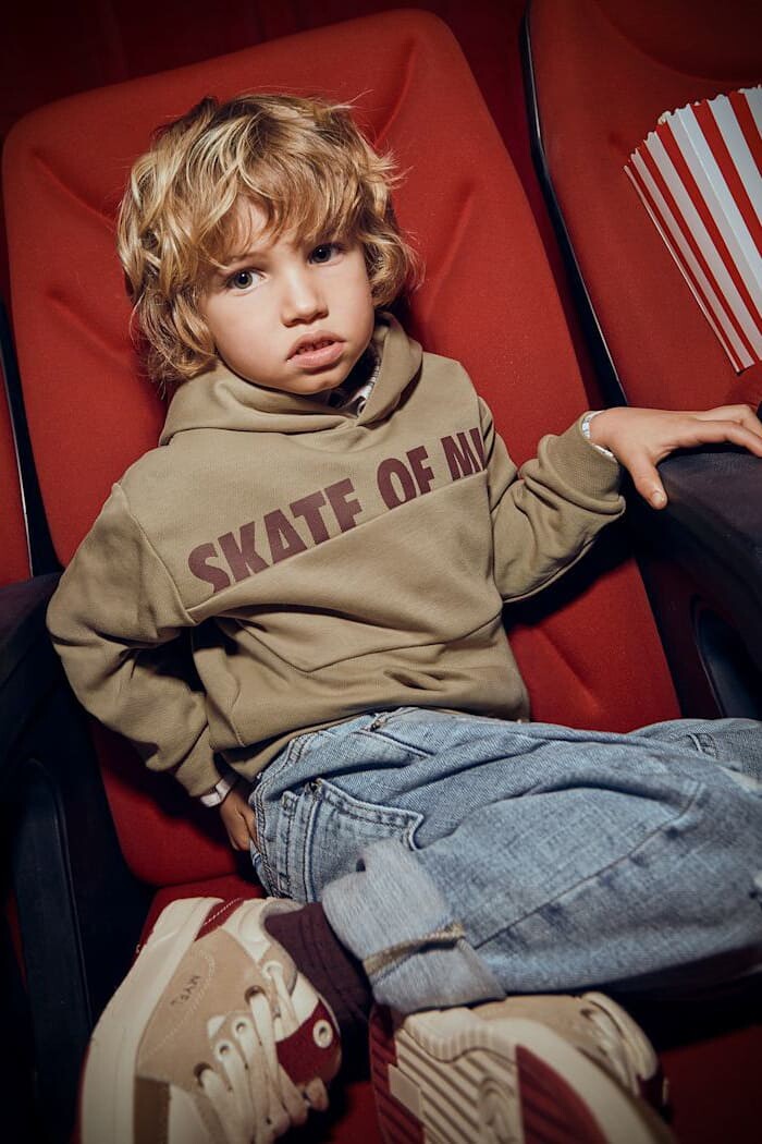 Sokak modasından ilham alan bu kapüşonlu sweatshirt, havalı ve rahat bir stil sunar. Göğüs kısmındaki renkli blok detayı ve üzerindeki "Skate of Mind" (Kaykay Ruhu) yazısı, tasarıma dinamik ve enerjik bir hava katıyor. Yumuşak kumaşı ve astarlı yapısı gün boyu konfor sağlarken, kapüşonu serin havalarda ekstra koruma sunar. Jean pantolonlar ve jogger'larla mükemmel bir uyum yakalayan bu parça, aktif ve stil sahibi çocukların favorisi olacak.