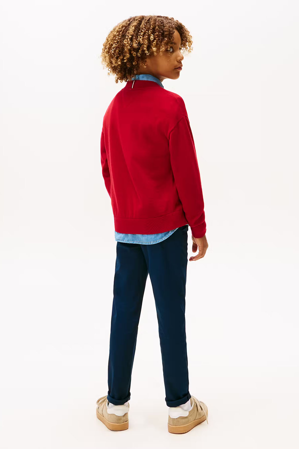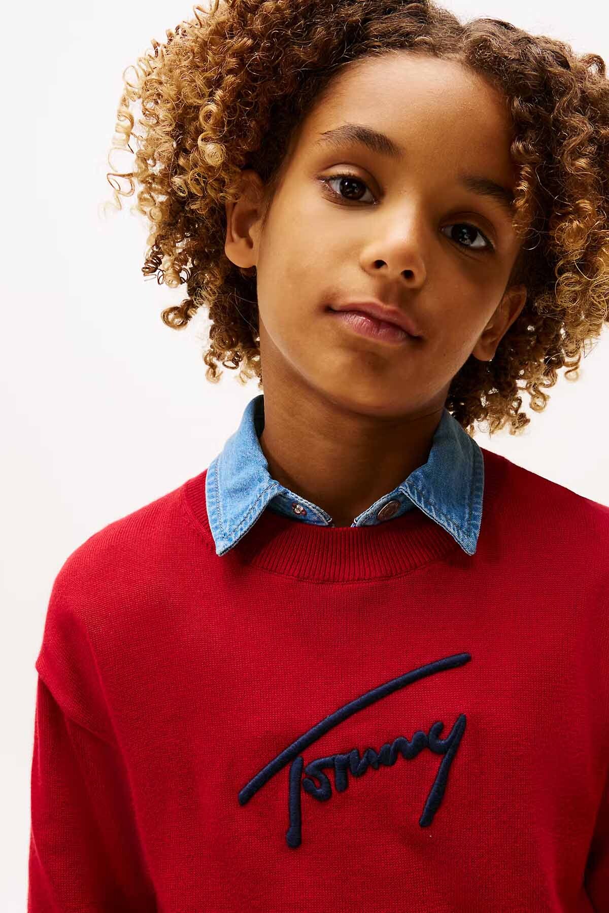 Esnek yapısı sayesinde hareket özgürlüğü tanıyan bu kazak, gömlek, jean veya chino pantolonlarla kolayca kombinlenebilir. Canlı kırmızı rengiyle enerjik bir stil sunar ve her mevsimde çocukların gardırobunda öne çıkan parçalardan biri olur.