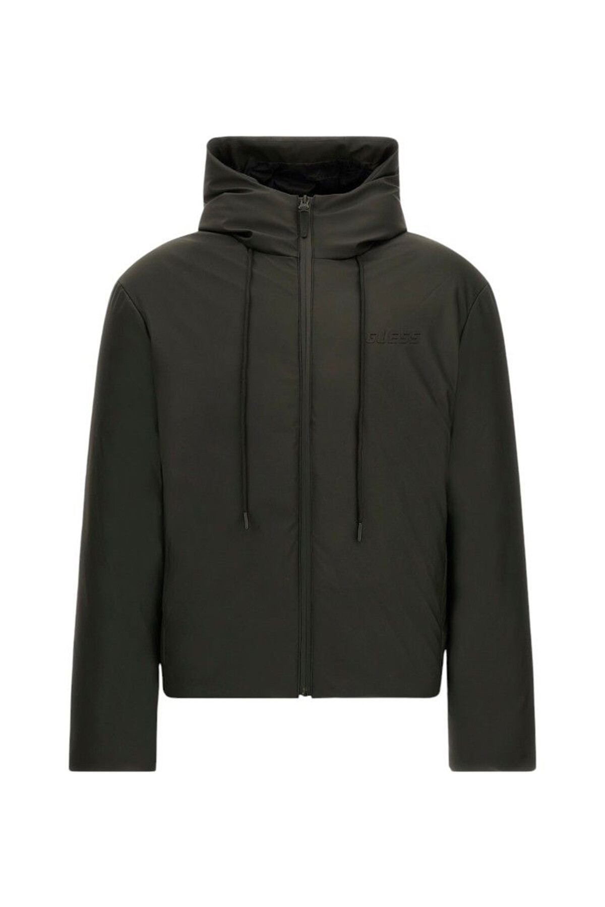 Erkek Dalım Padded Fermuarlı Kapüşonlu Mont - Siyah
