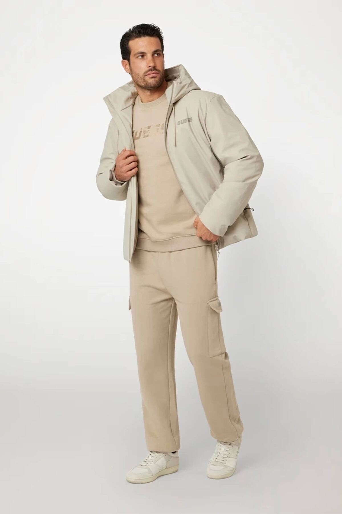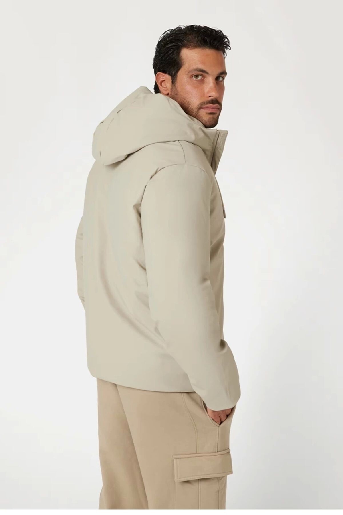 Erkek Dalım Padded Kapüşonlu Mont - Bej