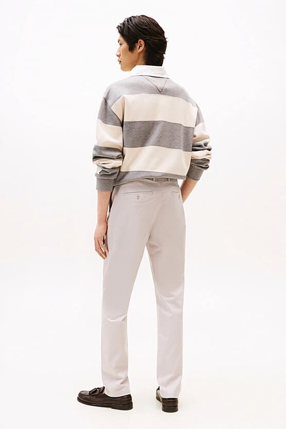 Klasik bir görünüm için tasarlanan bu chino pantolon, gardırobunuzun en temel ve şık parçalarından biri olacak. Esneklik katılmış pamuklu dokusu sayesinde gün boyu konfor sunarken, düz paça kesimiyle zamansız bir silüet yaratır. İki adet eğimli yan cebi ve iki adet düğmeli arka cebiyle fonksiyonel bir kullanım sunan pantolon, arkadaki minimal nakışlı amblemiyle zarif bir şekilde detaylandırılmıştır. Hem gömleklerle hem de basic tişörtlerle mükemmel uyum sağlayan bu parça, her duruma uygun zahmetsiz bir şıklık vadediyor.