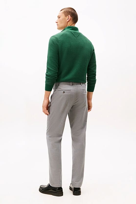 Gri rengin çok yönlülüğünü fırçalanmış özel dokusuyla buluşturan bu chino pantolon, günlük stilinize zengin ve sofistike bir hava katar. Pamuk karışımlı kumaşın yumuşak tuşesi cildinize konfor sunarken, melanj (kırçıllı) görünümü tasarıma modern bir derinlik kazandırır. Yanlarda bulunan verev cepler ve arkadaki düğmeli cep detayları, klasik şıklığı işlevsellikle birleştirir. Hem ofis günlerinde gömleklerle hem de hafta sonu trikolarla kombinleyebileceğiniz, dolabınızın kurtarıcı parçalarından biridir.
