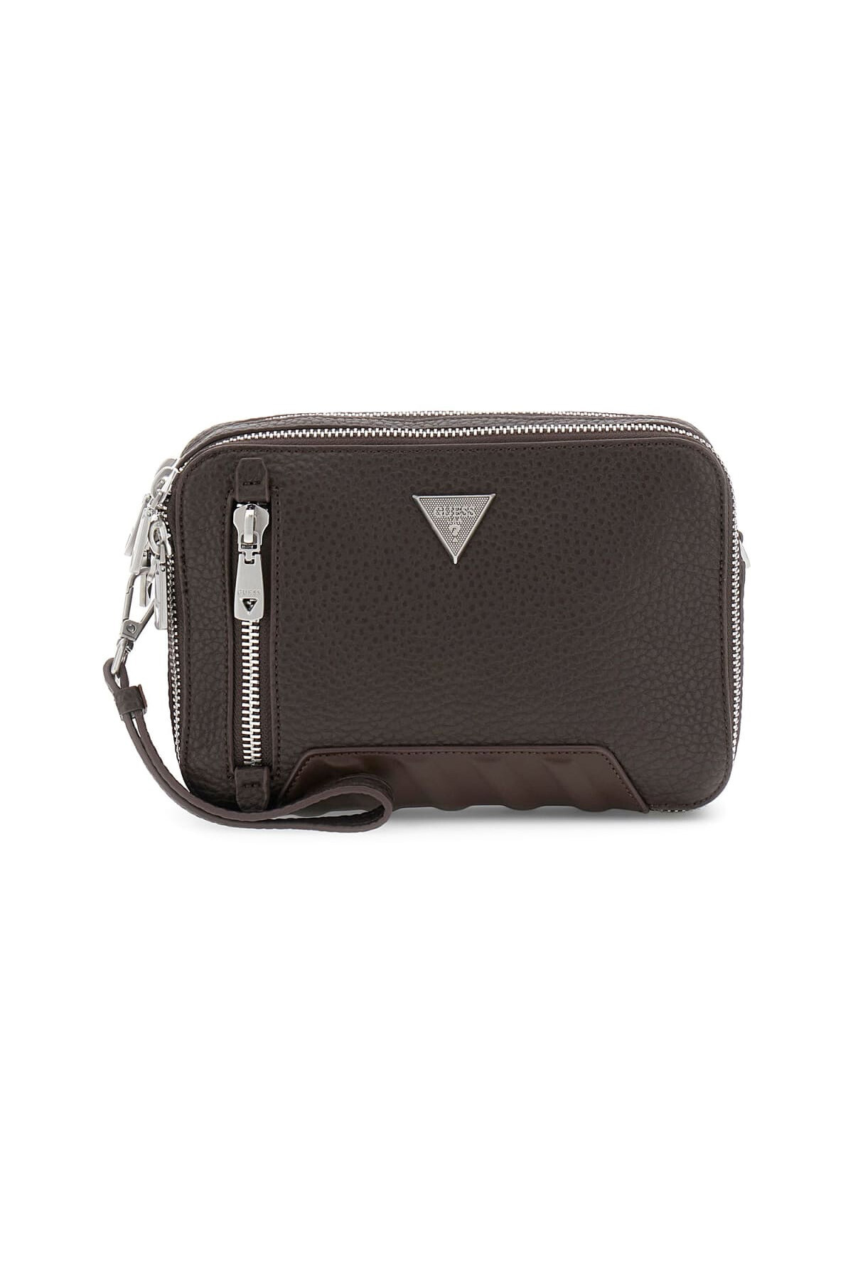 Hem şık hem de son derece fonksiyonel olan bu çanta, modern erkeğin günlük ihtiyaçları için tasarlanmıştır. Kahverengi dokulu suni deri yüzeyi, gümüş rengi metal detaylarla tamamlanmıştır. İki adet fermuarlı ana bölmesi ve pratik ön cebi sayesinde eşyalarınızı kolayca organize etmenizi sağlar. Çıkarılabilir el askısı ile portföy çanta olarak veya bir omuz askısı eklenerek çapraz çanta olarak kullanılabilen bu çok yönlü model, her duruma uyum sağlar.