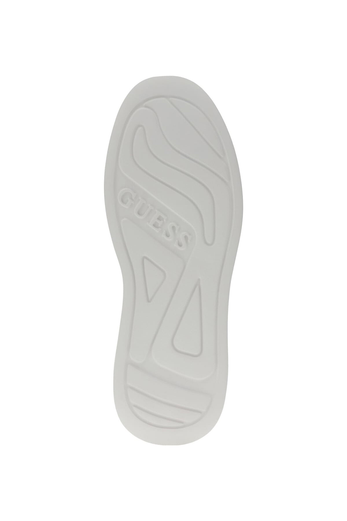 Detay: Arka bölümde süet deri panel, bağcıkta metalik logo plakası, kontrast yüksek dış taban