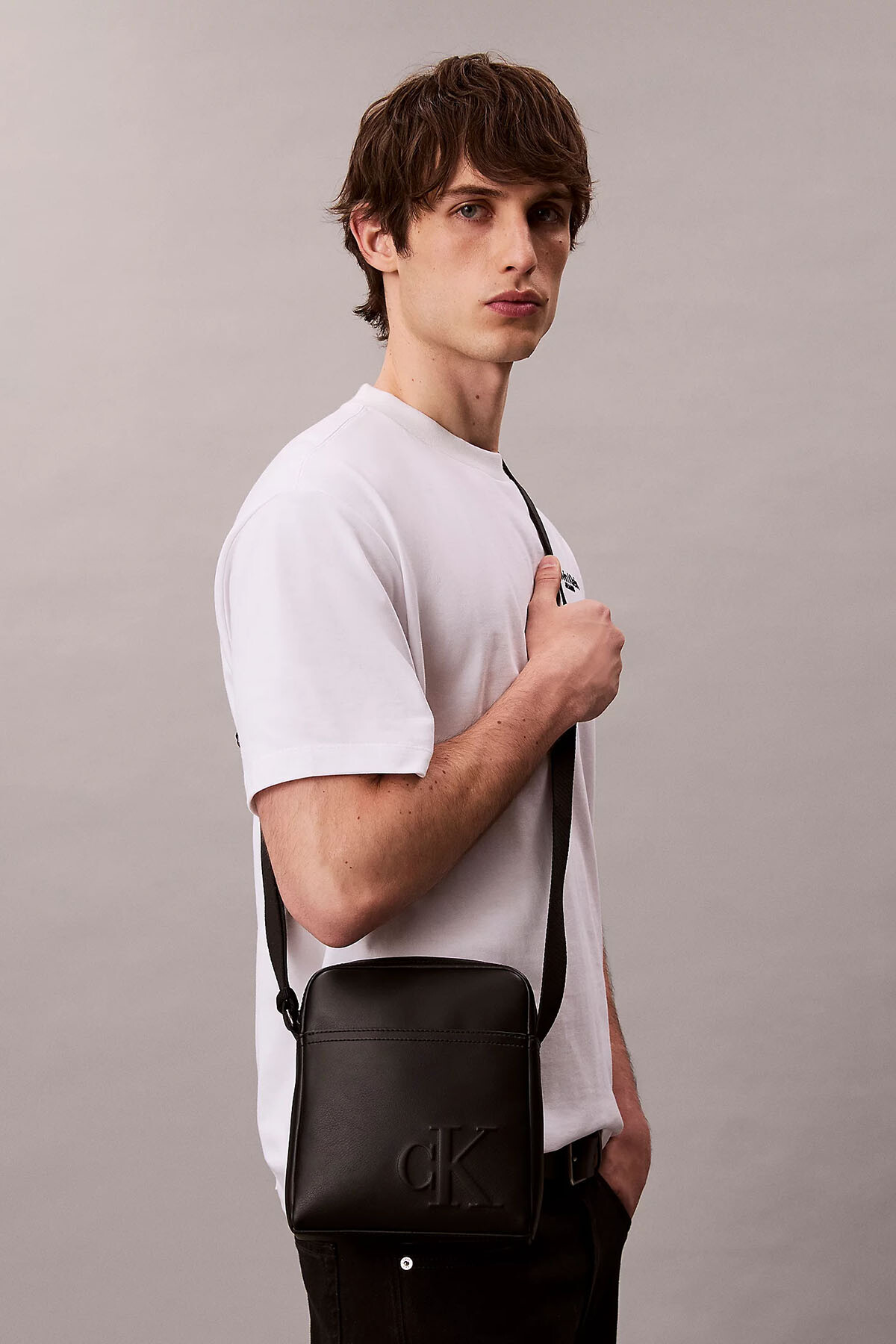 Tasarım: Kabartmalı CK logosu, üstten fermuarlı, ayarlanabilir çapraz askı