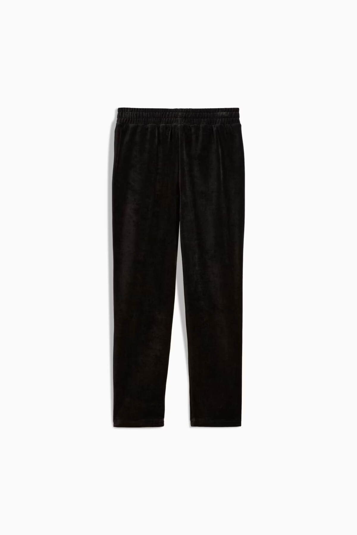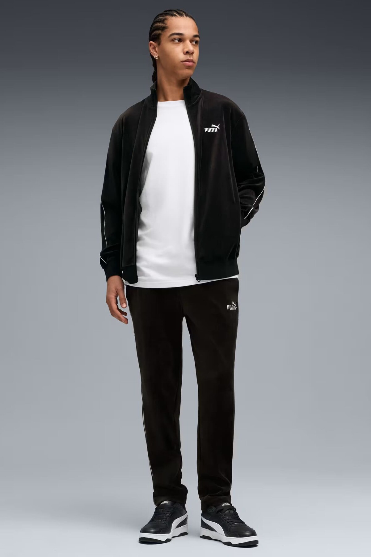 Lüks kadife dokusuyla öne çıkan bu eşofman altı, sportif stili konforla birleştiriyor. Günlük kullanım ve rahat anlar için ideal olan tasarımı, yanlarda uzanan kontrast beyaz şeritlerle hareket kazanır. Elastik bel bandı rahat bir uyum sunarken, sol bacak üzerindeki zarif amblem, tasarıma ikonik bir son dokunuş katar.