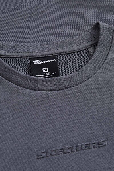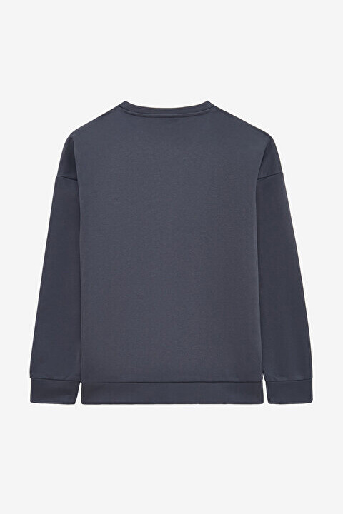 Erkek Essential Crewneck Rahat Kalıp Bisiklet Yaka Sweatshirt - Koyu Gri