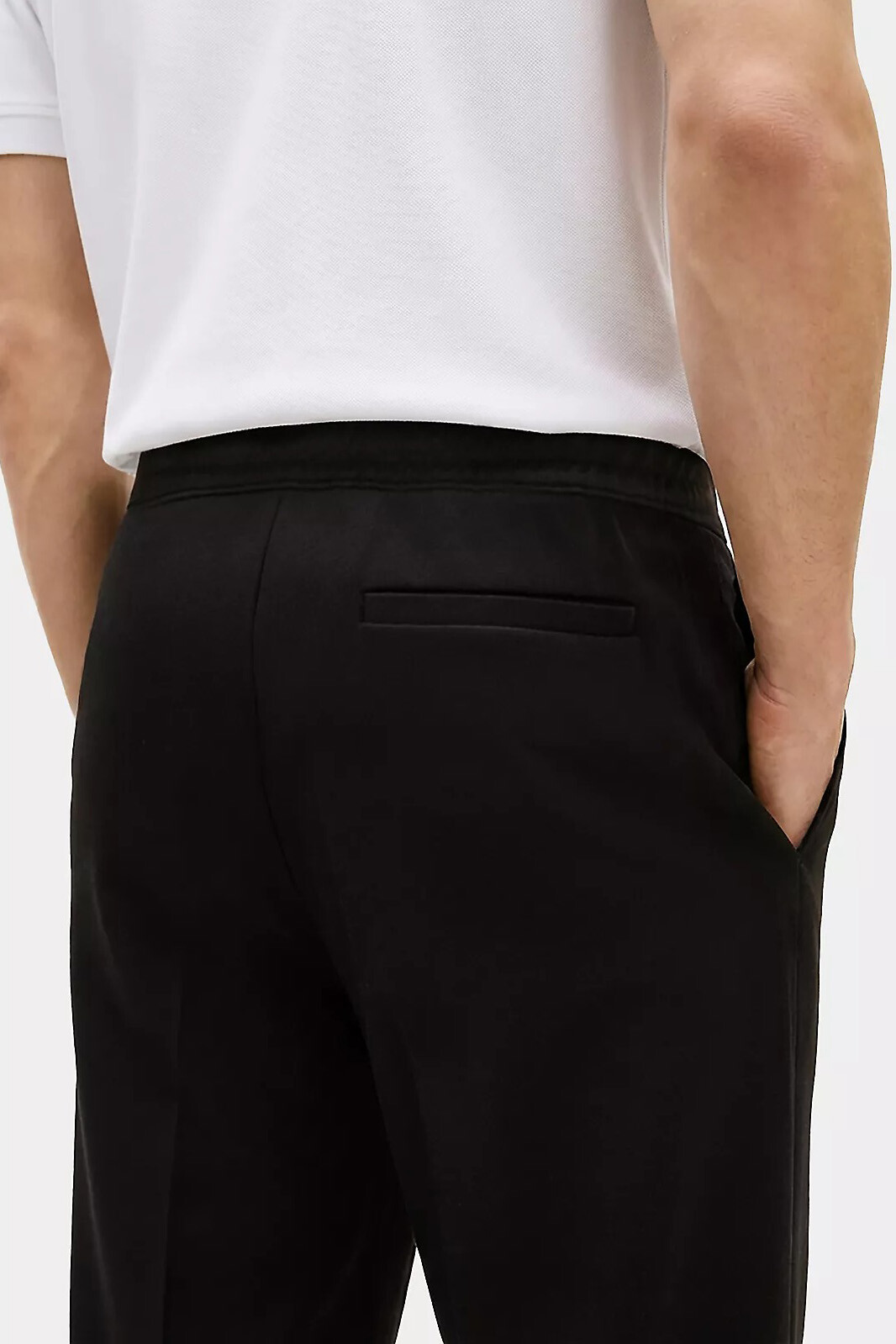 Ön kısmındaki kalıcı ütü izi görünümlü dikiş detayları ve net kesimiyle spor giyimin konforunu şık bir pantolon estetiğiyle birleştiren bu parça, gün boyu hem rahat hem de özenli görünmenizi sağlar. %72 pamuk ve %28 polyester karışımlı teknolojik kumaş yapısı, pürüzsüz yüzeyiyle modern bir duruş sergilerken cildinize nefes aldıran yumuşak bir temas sunar. Siyah rengin asaletini ve çok yönlülüğünü taşıyan tasarım, esnek bel bandı sayesinde vücuda mükemmel uyum sağlar ve hareket özgürlüğünü destekler. Yanlardaki pratik el cepleri ve arkadaki şık fleto cep detayı, minimalist tasarıma işlevsellik katar.