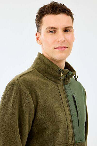 Soğuk havalarda koruma ve konfor sunan bu polar ceket, %100 polyester kumaşıyla hem hafiftir hem de vücut ısınızı koruyarak sizi gün boyu sıcak tutar. Dik yakası boyun bölgenizde ekstra koruma sağlarken, tam boy fermuarlı tasarımı pratik bir kullanım sunar. Göğüs kısmındaki kontrast panel ve fermuarlı cep detayı, tasarıma modern ve fonksiyonel bir dokunuş katar.