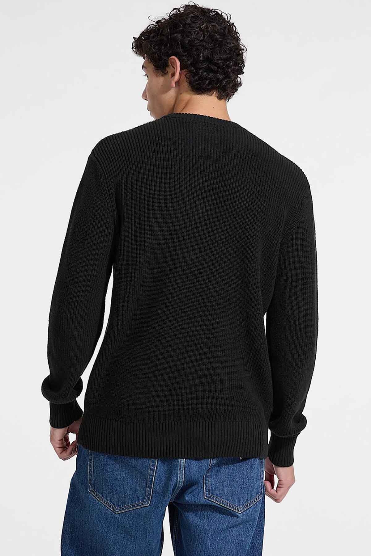 Guess Jeans'in bu triko kazağı, %100 pamuklu fitilli örgüsü ile hem klasik bir stil hem de üstün bir konfor sunar. Siyah rengin zamansız şıklığı, göğüs kısmında yer alan ikonik Guess üçgen logo detayı ile modern bir dokunuş kazanır. Standart kalıbı ve bisiklet yaka tasarımı sayesinde her vücut tipine uyum sağlayan bu kazak, jean'lerden kanvas pantolonlara kadar birçok parçayla kolayca kombinlenebilir.