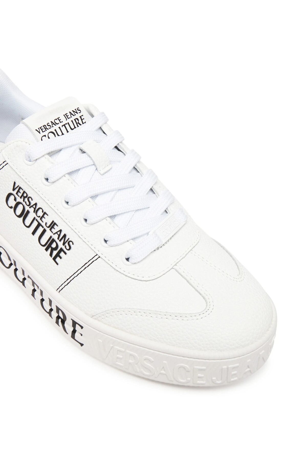 Klasik kort stilini modern ve cesur detaylarla birleştiren bu sneaker, sokak modasına iddialı bir giriş yapıyor. Dokulu deri, naylon ve poliüretan panellerin bir araya geldiği tamamen beyaz tasarımı, dinamik bir görünüm sunar. Ayakkabının en dikkat çekici özelliği, yanlarını ve topuğunu saran büyük siyah yazı logolarıyla bezenmiş kauçuk tabanıdır. Yan kısmındaki ek logo baskısıyla zenginleştirilen bu bağcıklı sneaker, hem konforlu hem de stil sahibi bir duruş sergileyerek günlük kombinlerinize karakter katacak.