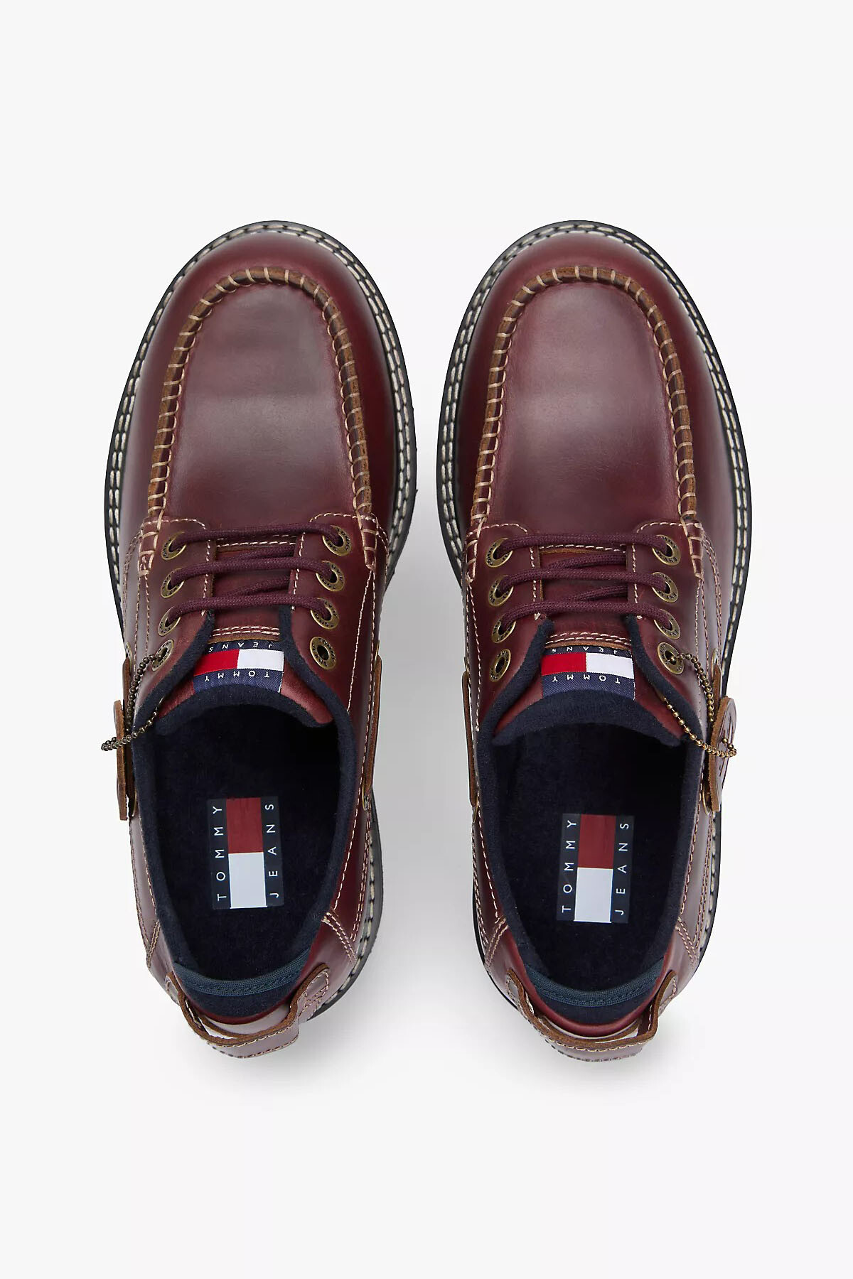 %100 Full Grain inek derisinin sunduğu doğal dayanıklılığı ve zamanla güzelleşen dokuyu, klasik tekne ayakkabısı tasarımının nostaljik çizgileriyle buluşturan bu model, stilinize güçlü bir karakter katar. Derin bordo rengin asaletini taşıyan pürüzsüz deri saya, kontrast oluşturan açık renkli dikiş detayları ve yanlardaki metal kuşgözü aksesuarlarıyla zenginleştirilerek el işçiliği vurgusunu ön plana çıkarır. Klasik modellerin aksine, alt kısımda kullanılan kalın ve dişli siyah kauçuk taban, tasarıma modern bir sokak stili yorumu getirirken her türlü zeminde üstün tutuş ve gün boyu konfor sağlar. Bağcıklarda bulunan özel deri etiket ve dil kısmındaki logo detayı, bu arşiv serisi tasarımın köklü geçmişine atıfta bulunur.