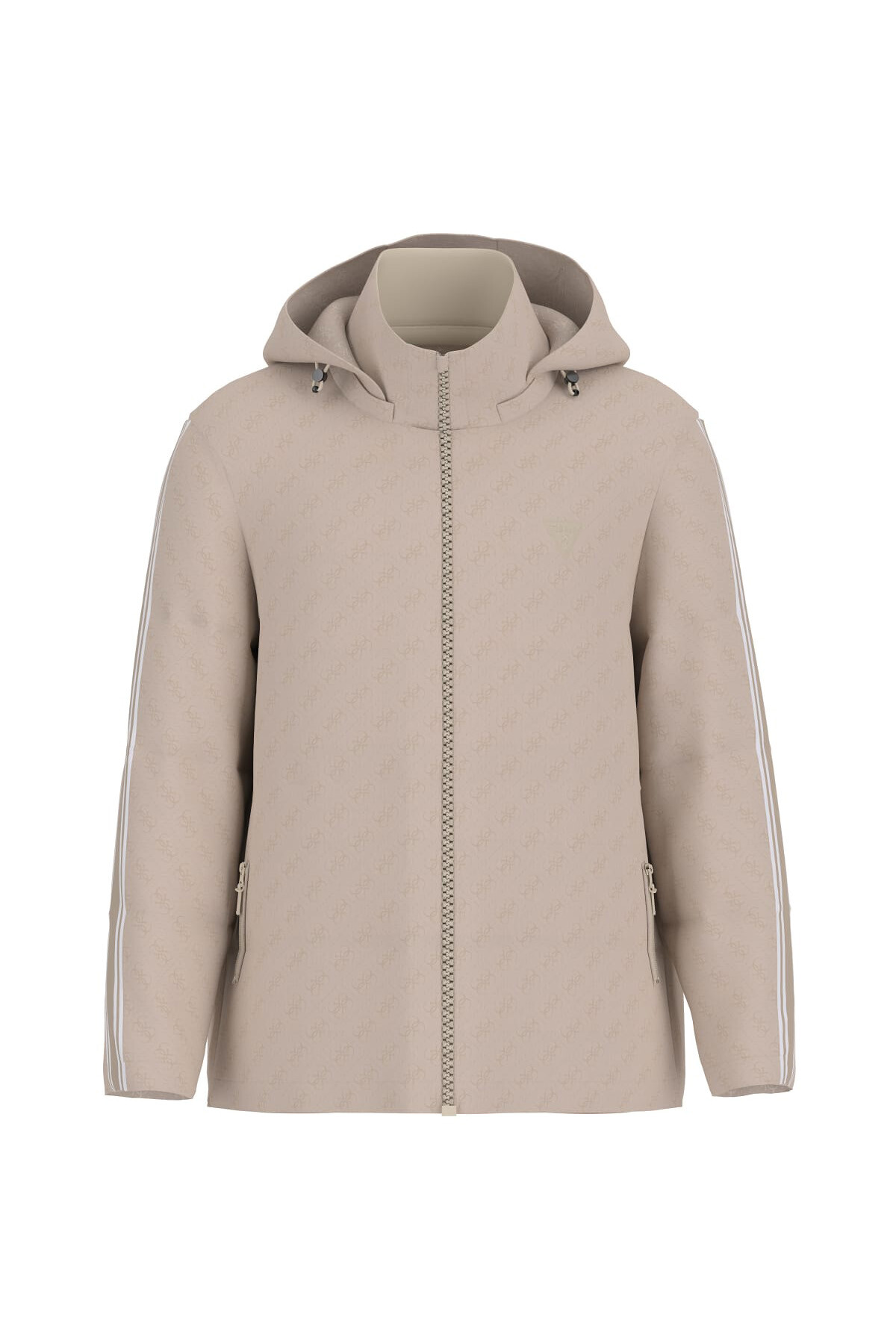 Sportif tasarımı ve fonksiyonel detayları bir araya getiren bu aktif mont, dinamik bir yaşam tarzı için idealdir. Polyester ve pamuk karışımlı kumaşı, dayanıklılık ve rahatlığı bir arada sunarken, tüm yüzeyi kaplayan zarif tonal monogram deseni tasarıma sofistike bir dokunuş katıyor. Kollarındaki şerit detayı enerjik bir görünüm sağlarken, ayarlanabilir kapüşonu ve fermuarlı cepleri pratik bir kullanım sunar.