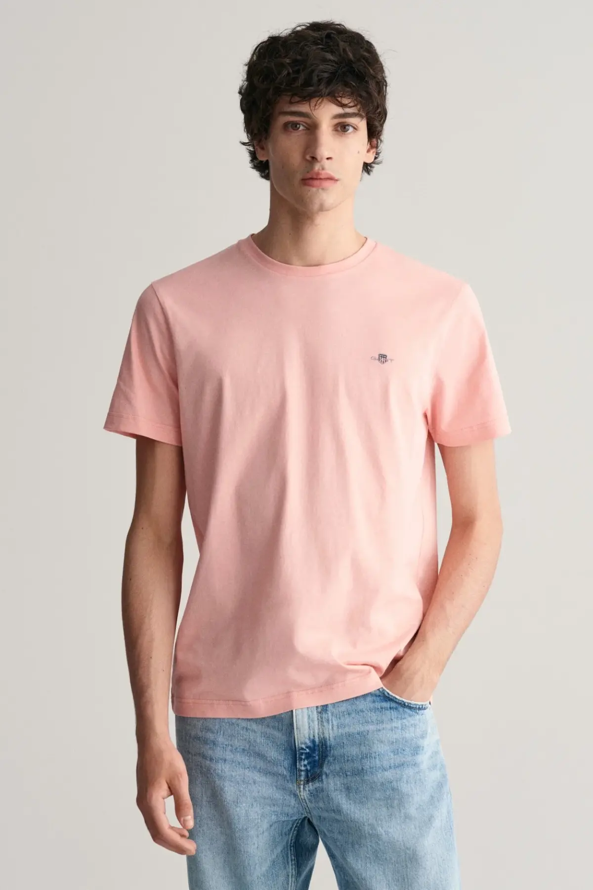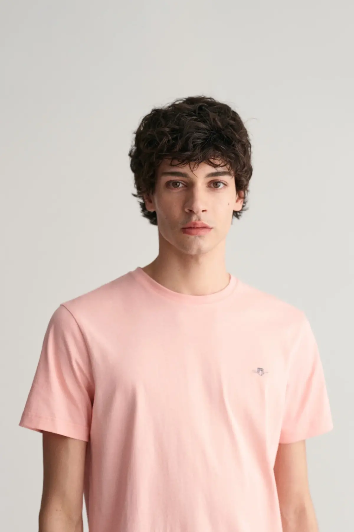 Erkek Gant Regular Fit Bisiklet Yaka Logolu T-Shirt - Pembe