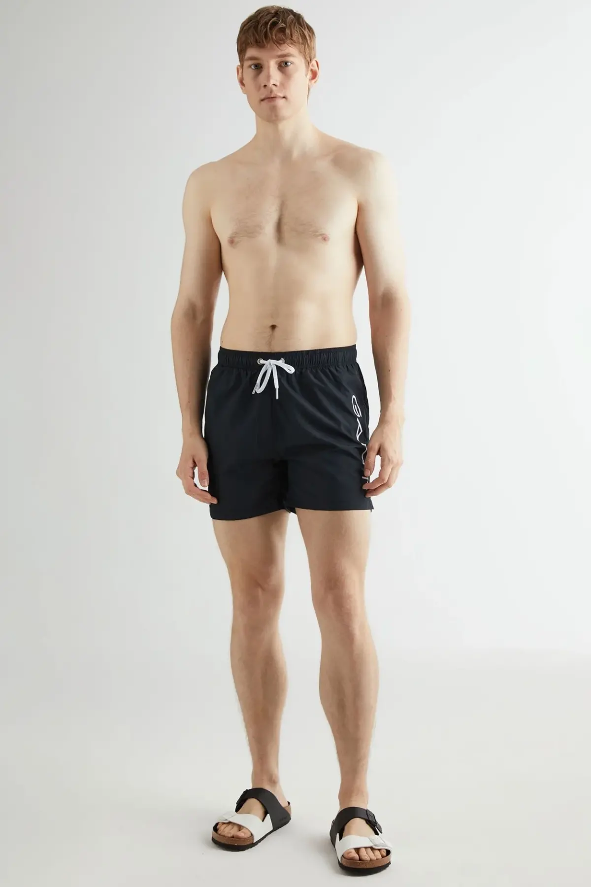 Erkek Gant Regular Fit Logolu Mayo Şort - Siyah