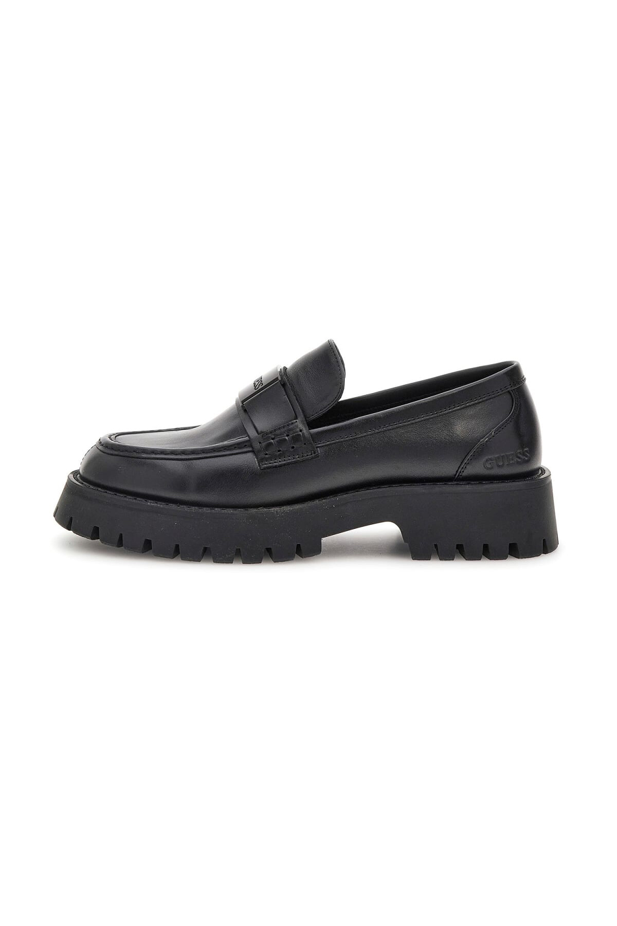 Klasik makosen tasarımına modern bir yorum getiren bu model, iddialı stiliyle öne çıkar. %100 inek derisinden üretilen pürüzsüz siyah üst kısım, modelin en dikkat çekici unsuru olan kalın ve tırtıklı traktör tabanla birleşir. Bu güçlü taban yapısı, hem güncel modayı yansıtır hem de konforlu bir kullanım sağlar. Üst kısımdaki bant üzerinde yer alan kabartma yazılı aksesuar, ayakkabının modern karakterini tamamlayan incelikli bir detaydır.