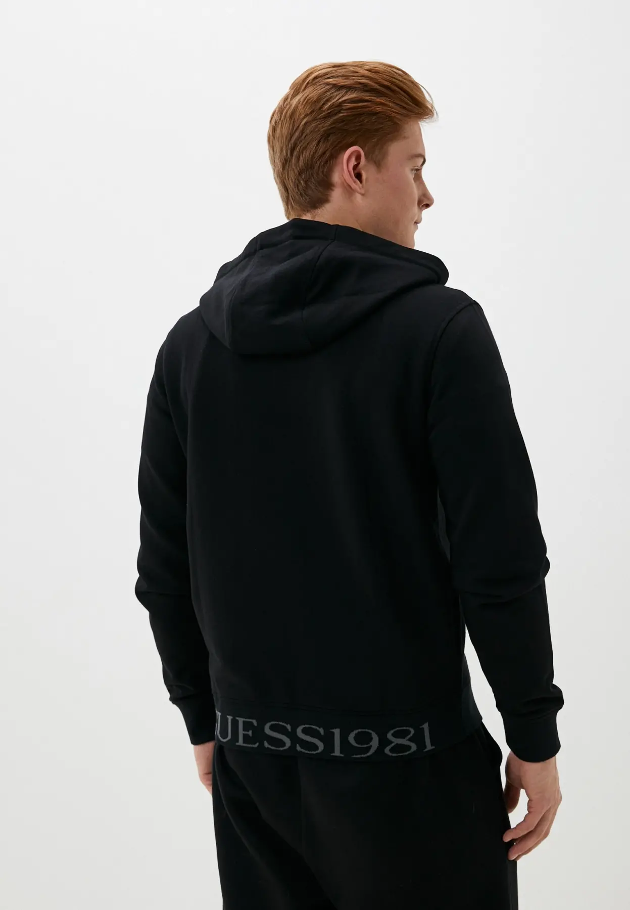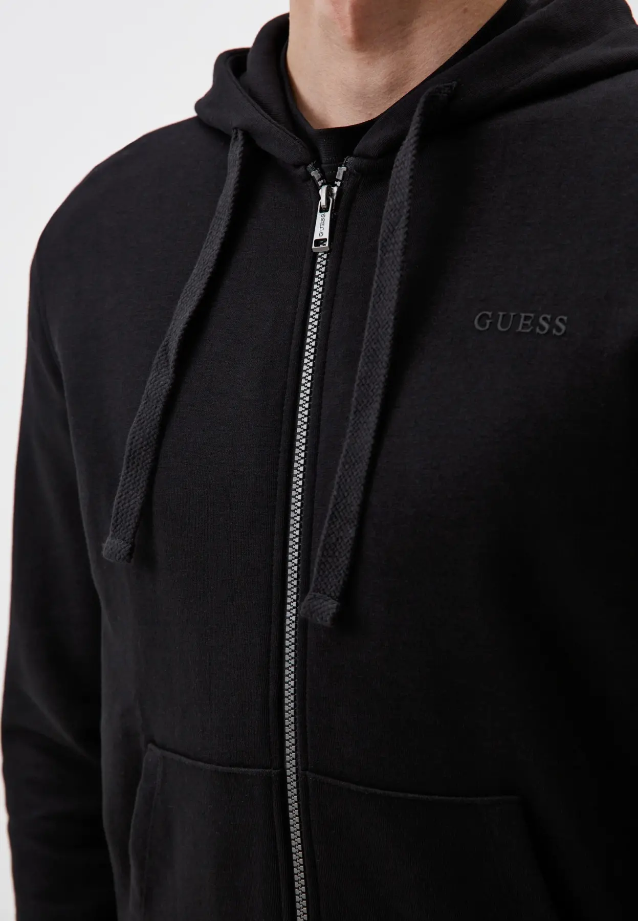 Erkek Guess Kapüşonlu Fermuarlı Sweatshirt - Siyah