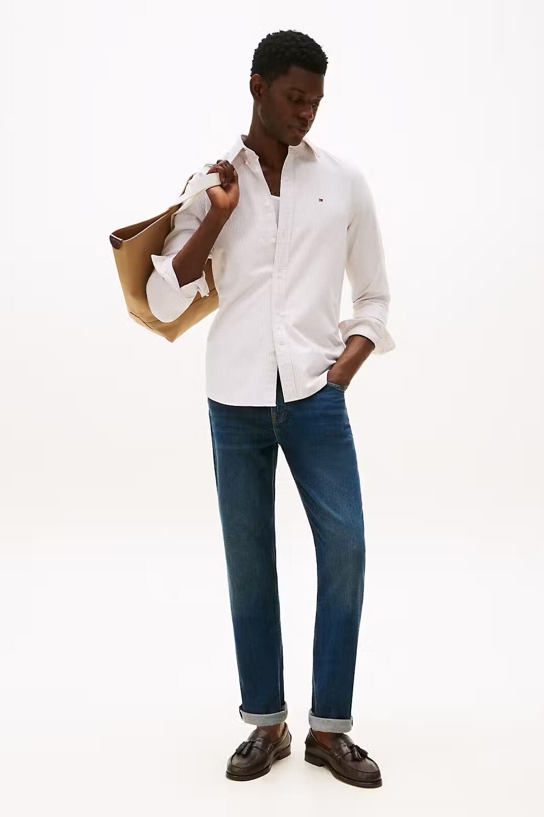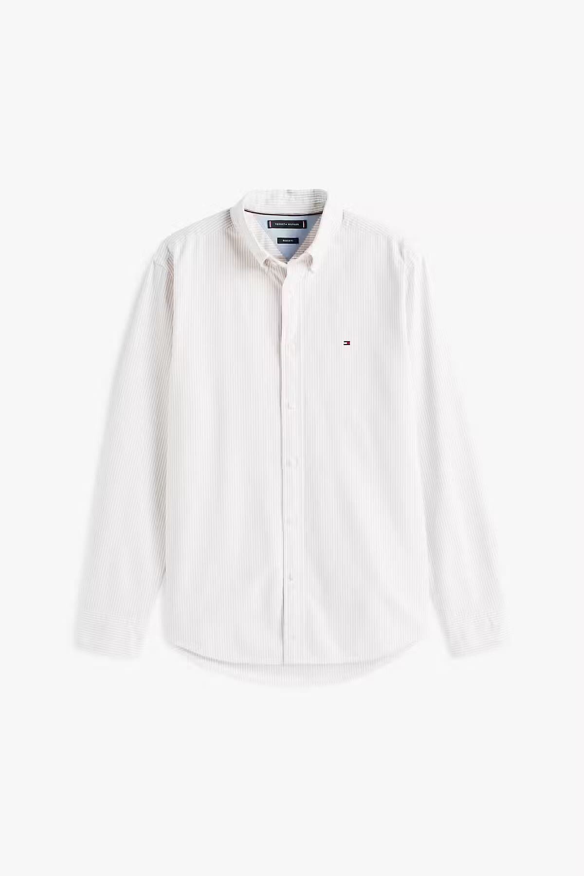 Klasik Oxford gömlek stilini modern bir dokunuşla güncelleyen bu model, bej ve beyaz şeritli deseniyle doğallığı şıklıkla buluşturur. %100 pamuklu Oxford dokusu, cildinize nefes aldıran tok ve kaliteli bir yapı sunar. Düğmeli yaka tasarımı ve yuvarlak tek düğmeli manşetleri, hem ofis stilinde hem de günlük kombinlerde derli toplu ve özenli bir görünüm sağlar. Arka kısımdaki pili detayı hareket özgürlüğünü desteklerken, göğüs üzerindeki nakış bayrak logosu markanın ikonik mirasını yansıtır.