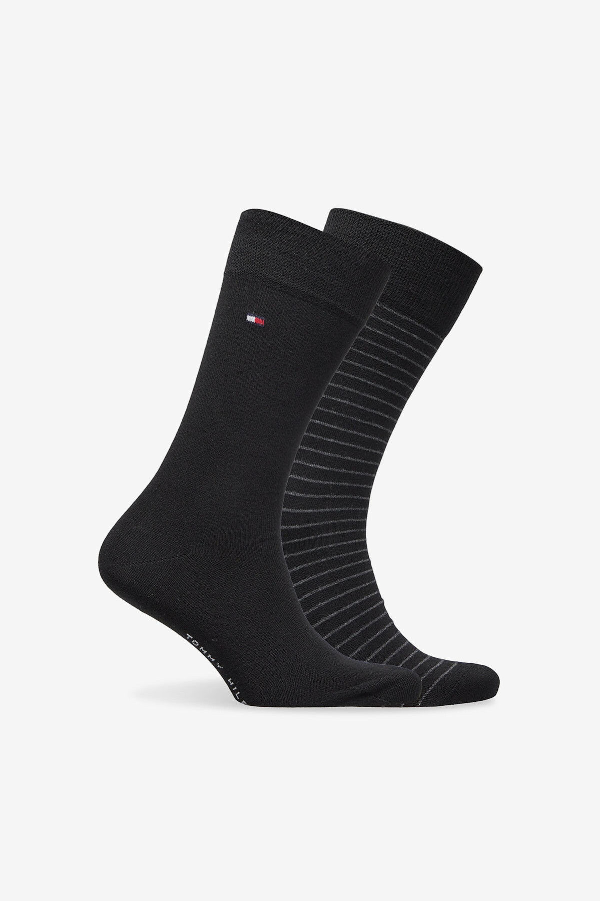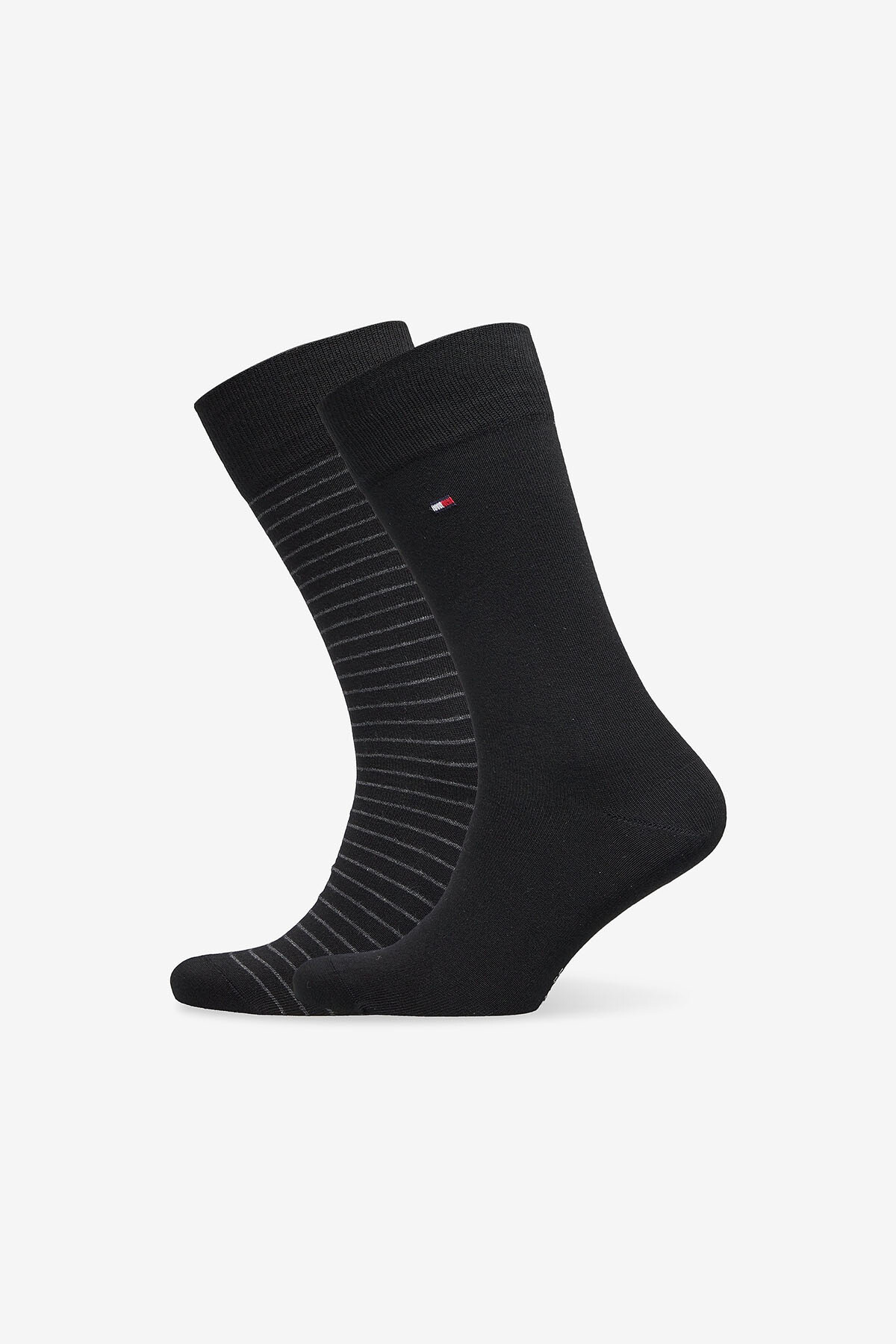 Siyahın zamansız şıklığını ince detaylarla hareketlendiren bu 2'li çorap seti, gardırobunuzun en çok kullanılan parçalarından biri olmaya aday. Paketin içerisinde yer alan birinci çift, tamamen düz siyah rengiyle resmi ve ciddi bir duruş sergilerken; ikinci çift, siyah zemin üzerine işlenmiş ince gri yatay çizgilerle stilinize modern bir dokunuş katar. Bilek kısmındaki ikonik bayrak logosu, tasarıma markanın imzasını atarken; taban kısmındaki marka yazısı şıklığı tamamlar. Yumuşak pamuklu dokusu ve esnek lastik yapısı sayesinde gün boyu konfor sağlayan bu set, hem takım elbiselerle hem de günlük koyu renk pantolonlarla mükemmel uyum sağlar.