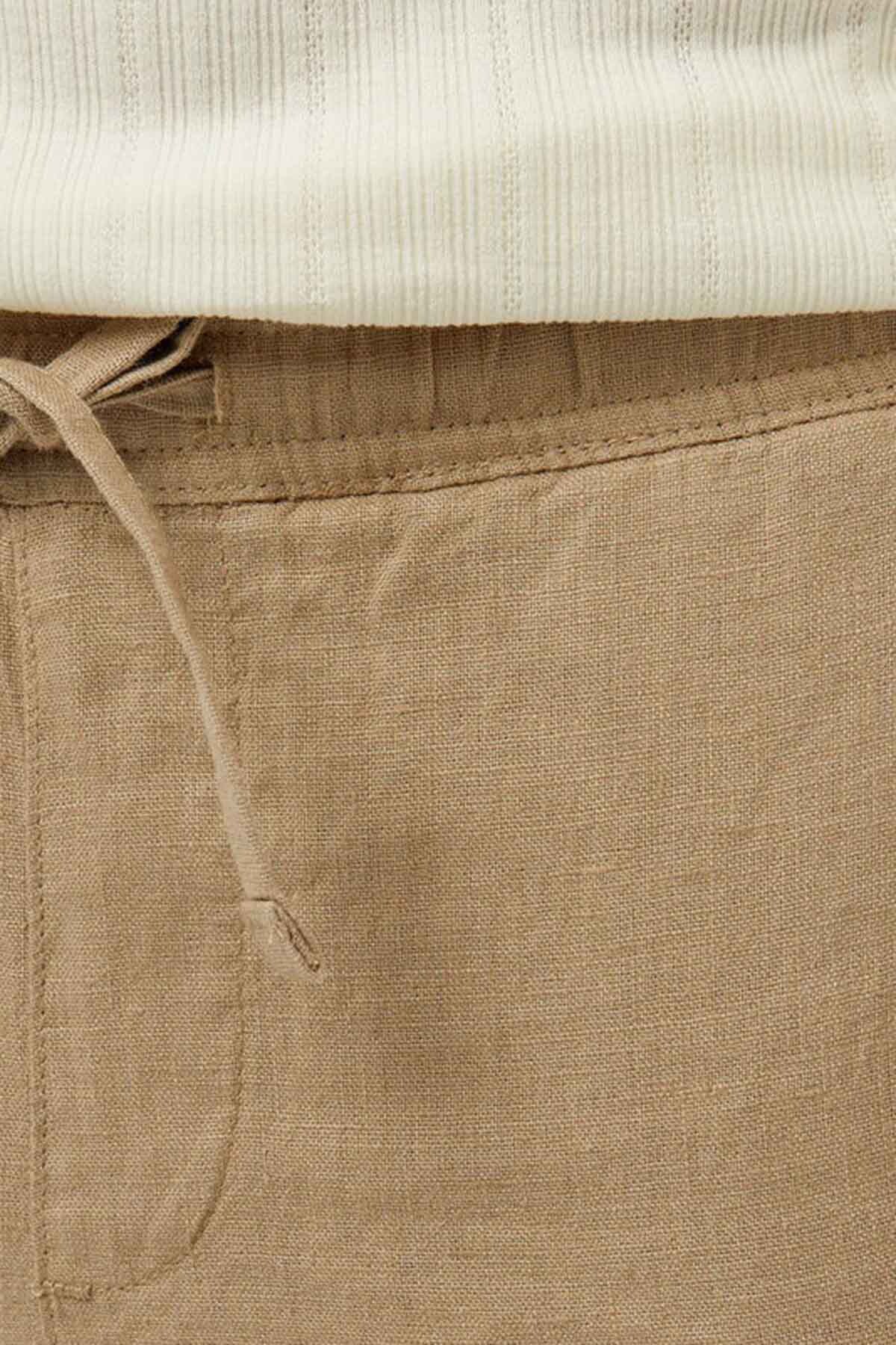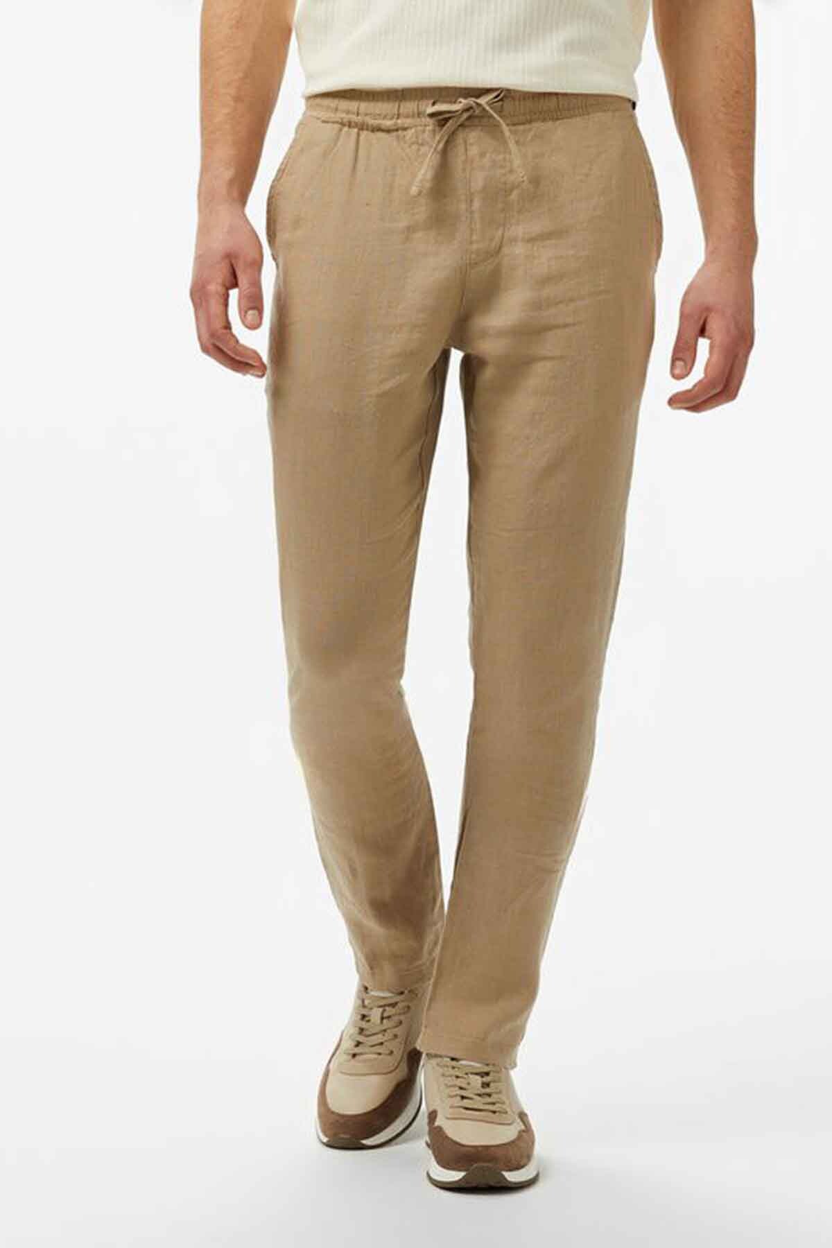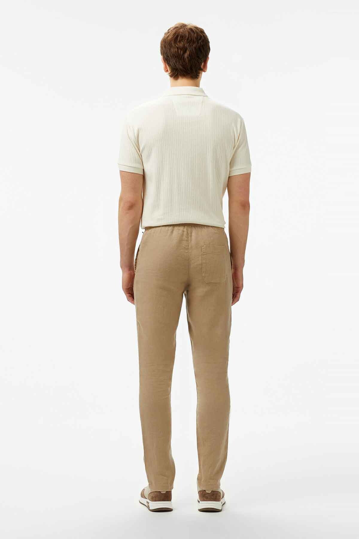 Erkek Jogger Keten Pantolon - Bej