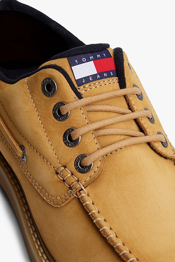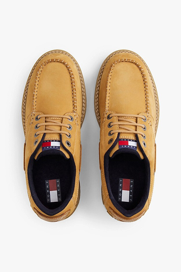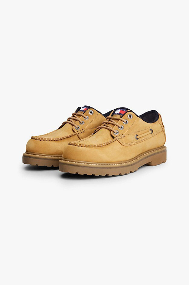 %100 doğal nubuk derinin yumuşak ve mat dokusuyla tasarlanan bu ayakkabı, klasik tekne ayakkabısı silüetini 2000'lerin başındaki cesur sokak modasıyla yeniden yorumlar. Tasarımın odak noktası olan kalın ve dişli taban yapısı, ayakkabıya hem güçlü bir karakter kazandırır hem de şehir zemininde sağlam bir tutuş sağlar. Ön kısımdaki belirgin el işçiliği görünümlü dikiş detayları ve yanlardan dolaşan bağcık sistemi, otantik denizci stilini modern bir formla buluşturur.