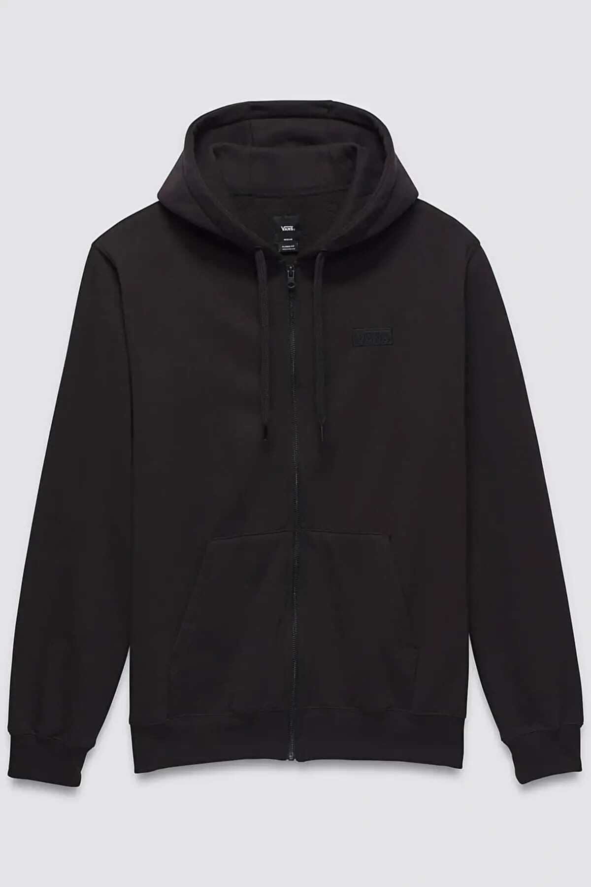 Erkek Kapüşonlu Normal Düz Fermuarlı Sweatshirt - Siyah