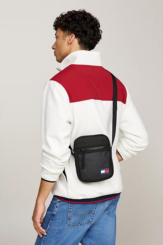 Erkek Kauçuk Kaplamalı Logolu Renk Bloklu Postacı Çantası - Siyah