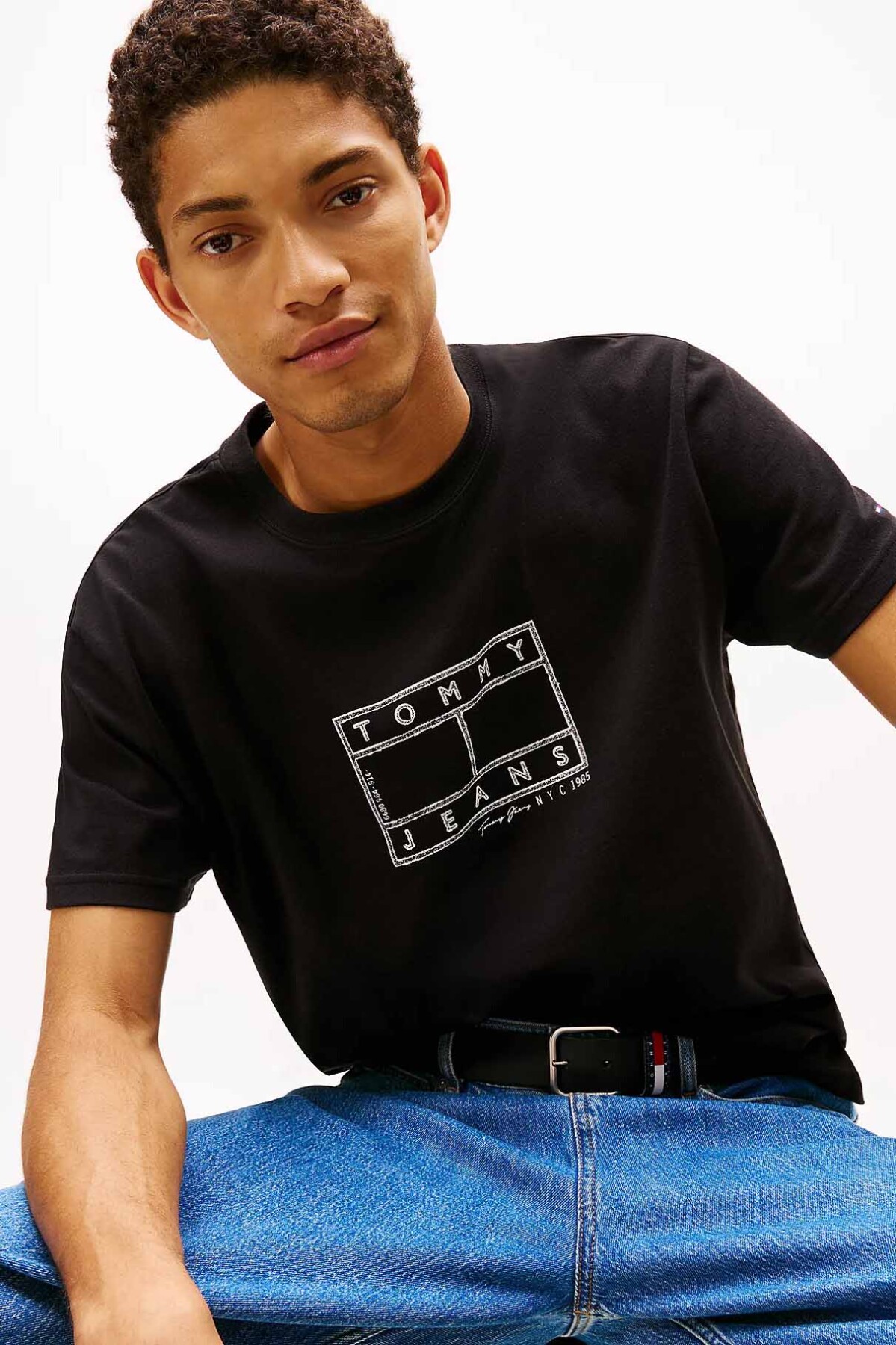 Detay: Göğüste eskiz görünümlü grafik baskı, kolda minik logo