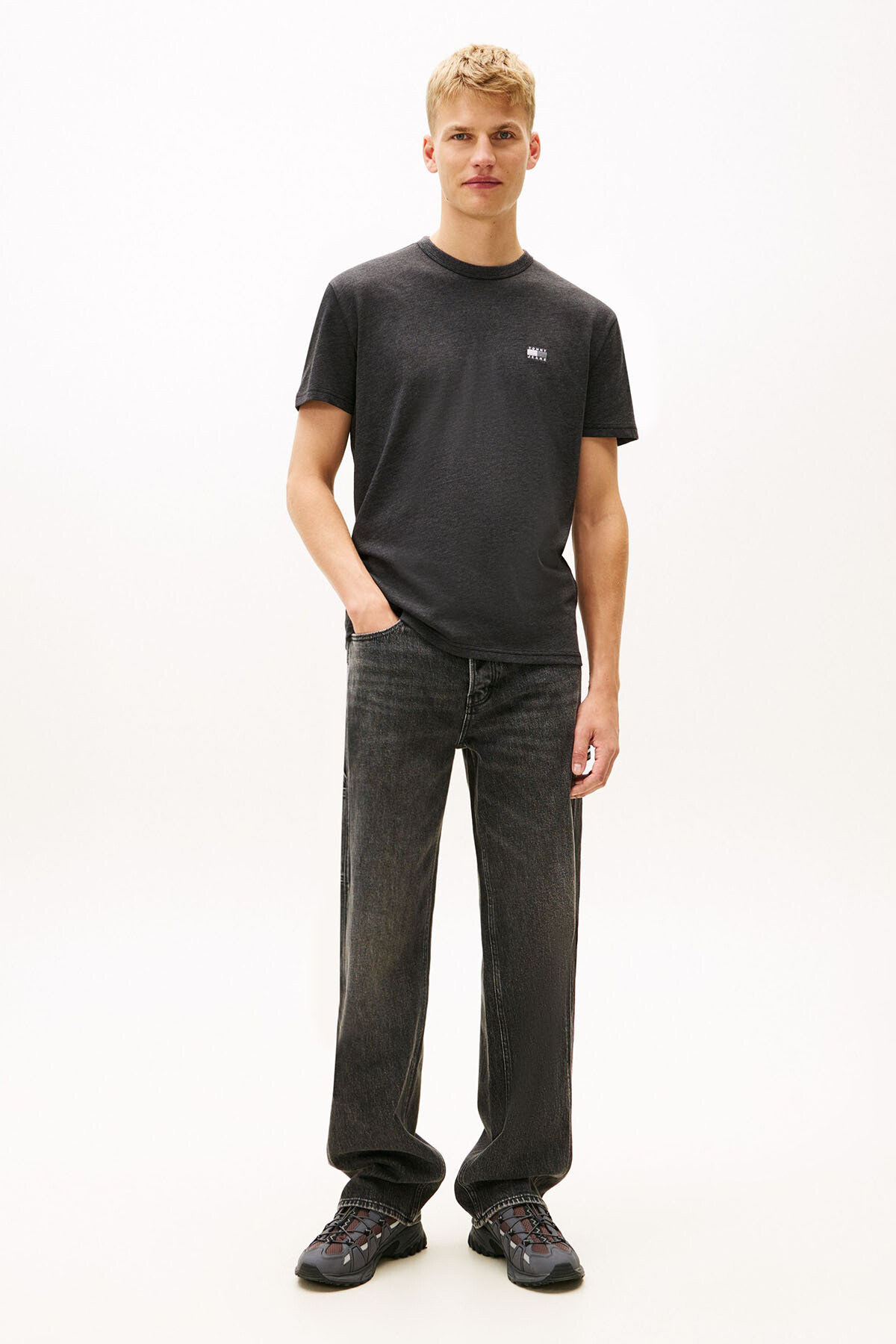 Detay: Göğüste tonal logo arması, melanjlı kumaş yüzeyi