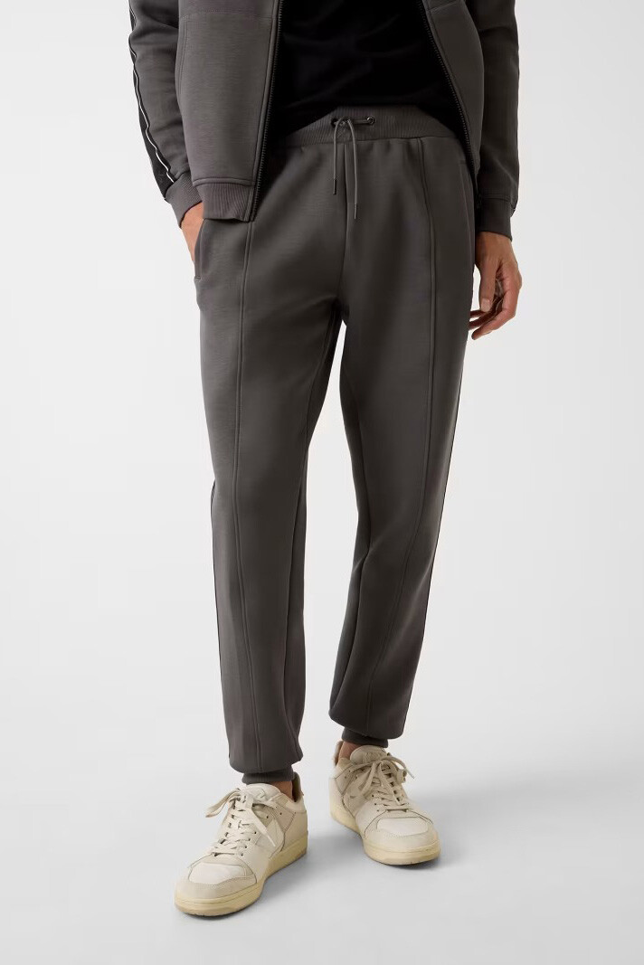 Modern ve güçlü antrasit tonunu, sportif şıklığın belirleyici detaylarıyla harmanlayan Mickey eşofman altı, antrenman konforunu sokağa taşıyor. %51 pamuk ve %49 polyester karışımından oluşan kumaşı, pamuğun doğal yumuşaklığını polyesterin dayanıklılığıyla birleştirerek tok ve formunu koruyan bir yapı sunuyor. Tasarımın yan kısımları boyunca uzanan logolu şeritler, koyu zemin üzerinde dinamik bir hareketlilik yaratırken; bacakların ön yüzündeki dikiş izi detayı daha net ve yapılı bir silüet sağlıyor. Ayarlanabilir büzgü ipli elastik bel bandı ve ribana paçaları sayesinde vücuda tam oturan model, arka cebiyle işlevselliği tamamlıyor.