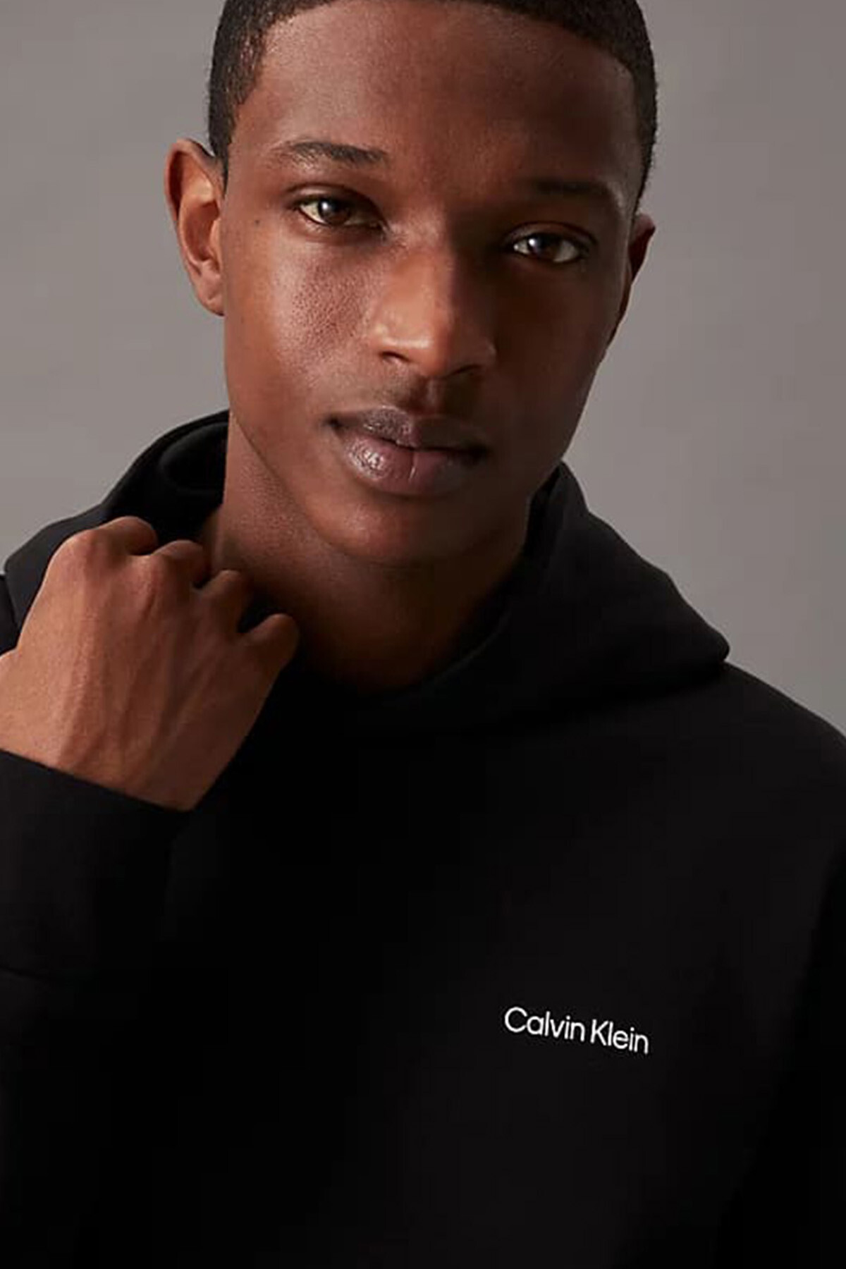 Erkek MICRO Logo Pamuklu Kapüşonlu Sweatshirt - Siyah