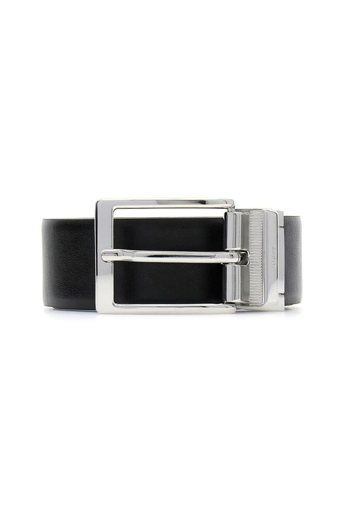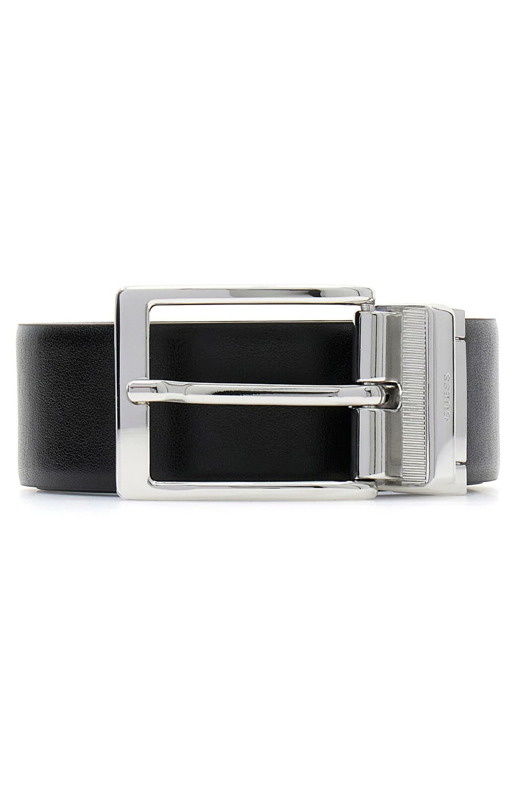 Detay: Guess logolu gümüş rengi parlak metal toka