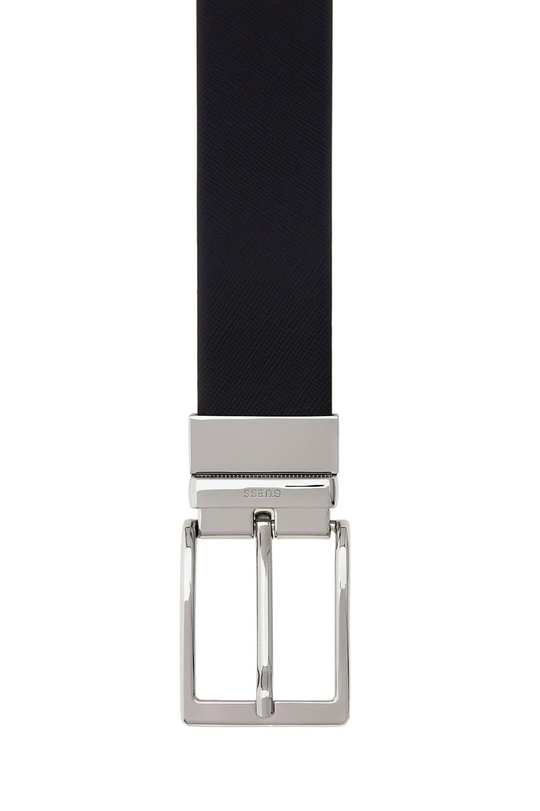 Kemerin gümüş rengi parlak metal tokası, modern ve dikdörtgen formuyla maskülen bir duruş sergilerken yan kısmında yer alan minimal "GUESS" yazısı markanın prestijli imzasını taşır. İnce ve zarif dikiş detaylarıyla tamamlanan pürüzsüz kenar bitişleri, Guess'in işçilik kalitesini ön plana çıkarır. Ayarlanabilir delikli yapısı sayesinde vücudunuza tam uyum sağlayan bu aksesuar, hem resmi takımlarla hem de kumaş pantolonlarla kusursuz bir bütünlük oluşturarak stilinizi bir üst seviyeye taşır.