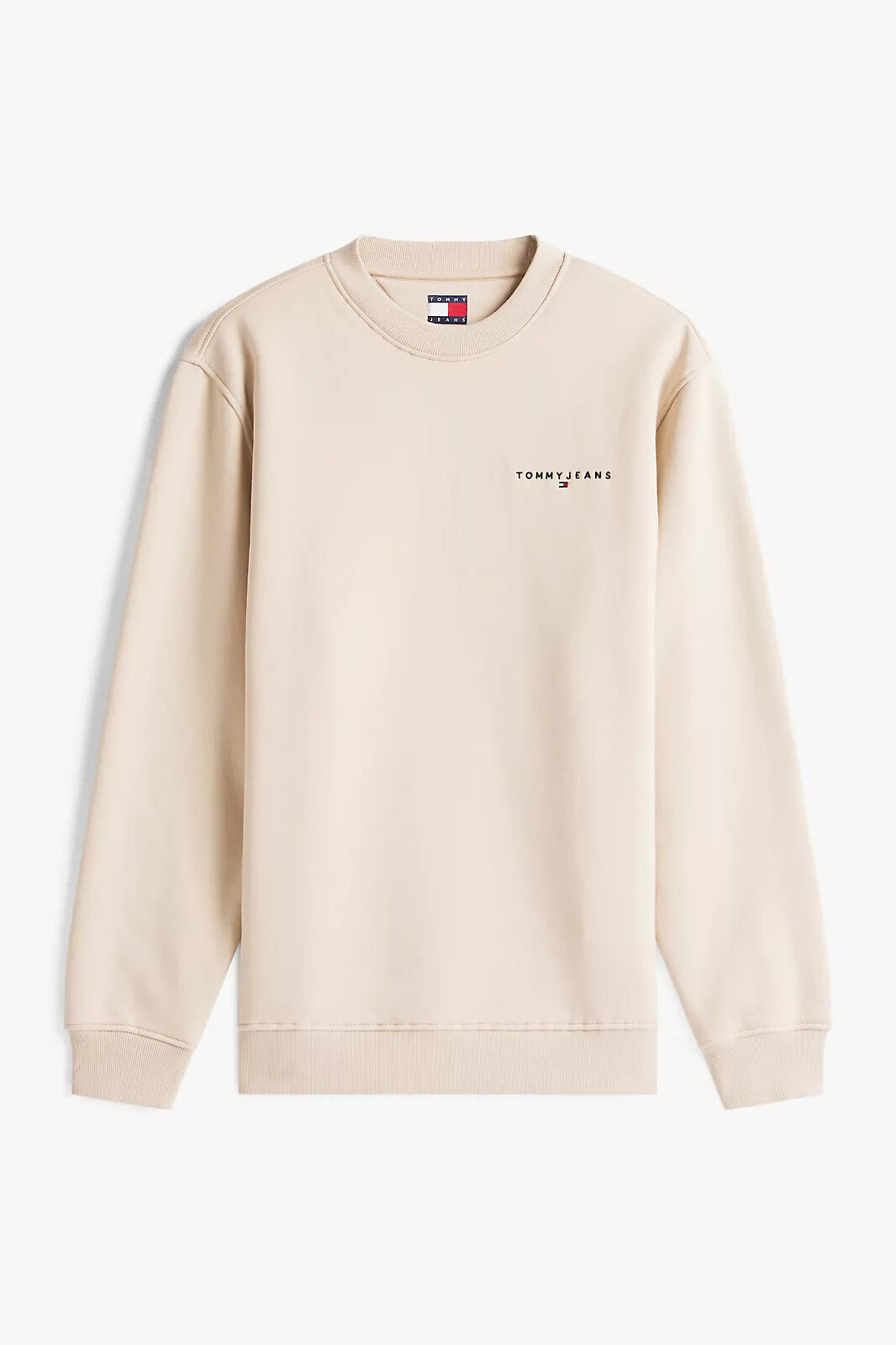 Detay: Göğüste minimal yazı logosu, ribana manşet ve etek ucu