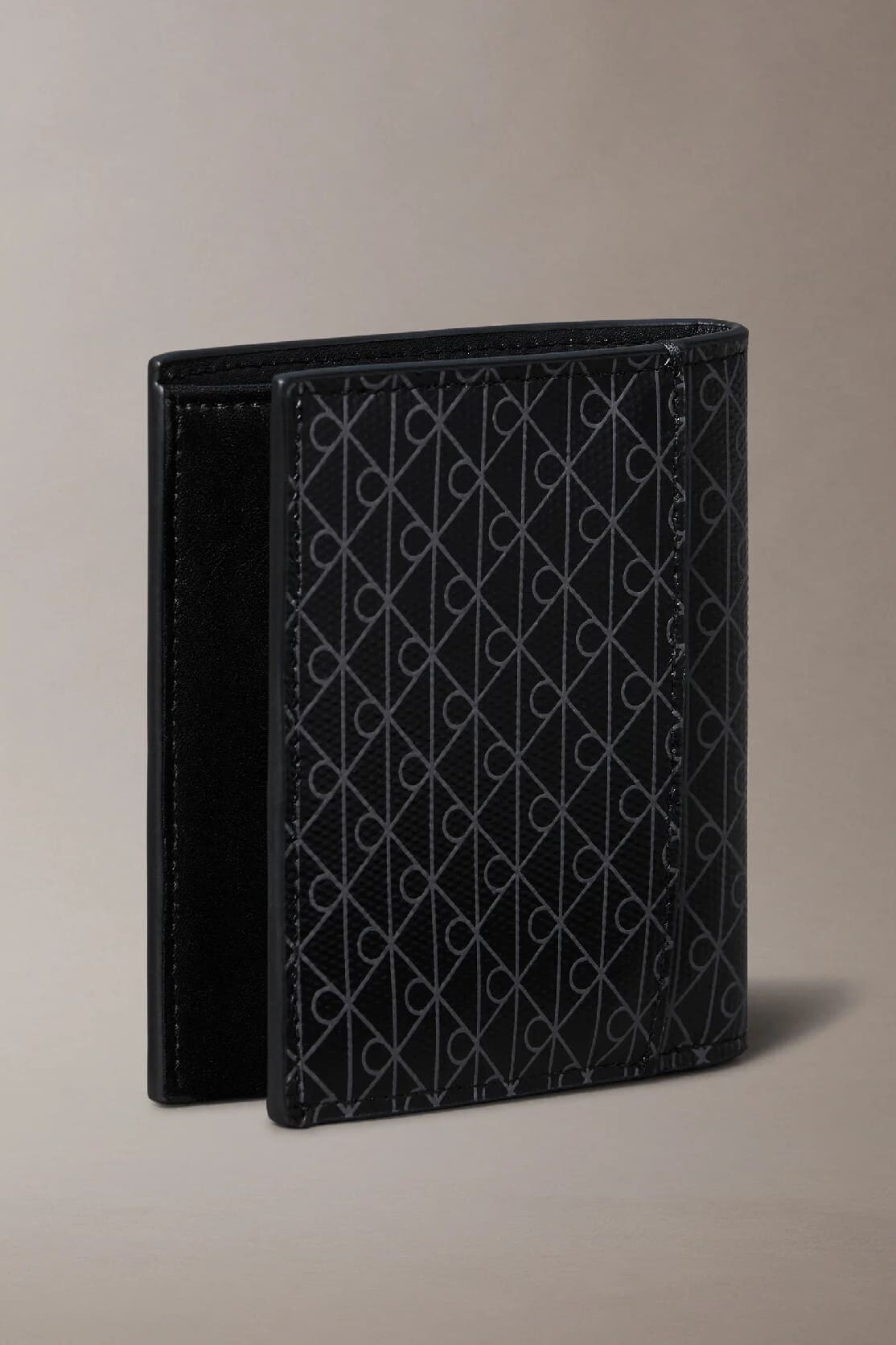 Modern ve dikkat çekici bir tasarıma sahip bu cüzdan, stilini detaylarda yansıtmak isteyen erkekler için idealdir. Parlak kaplamalı yüzeyi üzerindeki geometrik monogram deseni, dinamik bir görünüm sunar. İki katlı ve ince yapısı, cepte rahatça taşınabilirlik sağlarken, iç kısmındaki çok sayıda kart bölmesi ve şeffaf kimlik penceresi ile mükemmel bir organizasyon sunar. Ön yüzdeki minimalist marka yaması, tasarıma son bir dokunuş ekler.