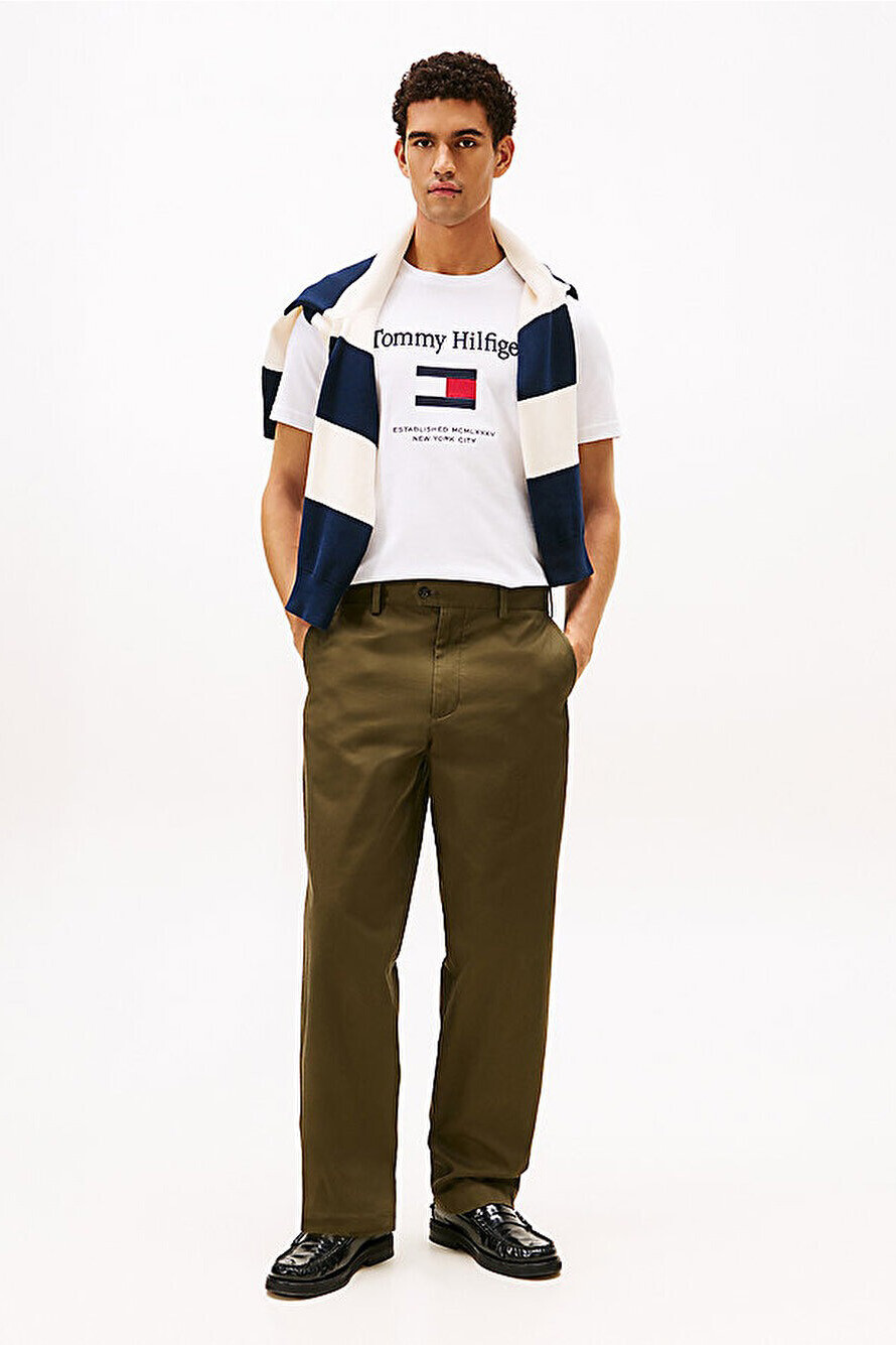 Zamansız tasarımı ve gün boyu nefes alan doğal yapısıyla bu tişört, hem konforunuzu hem de stilinizi bir üst seviyeye taşıyarak günlük kombinlerinizin vazgeçilmezi olmaya adaydır. %100 pamuklu yumuşak jarse kumaşı, cilde nazik bir dokunuş sunarken ferah yapısıyla her mevsim rahatlık sağlar. Göğüs kısmının tam merkezinde yer alan dikdörtgen formlu ikonik bayrak arması ve üzerindeki klasik yazı nakışı, sade zemine prestijli ve kolejli bir hava katar. Vücudu sıkmayan tam kalıbı ve bisiklet yaka kesimi, hareket özgürlüğünü desteklerken modern bir duruş sergiler.