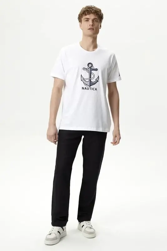 Erkek Nautica Standart Fit Kısa Kollu T-Shirt - Beyaz