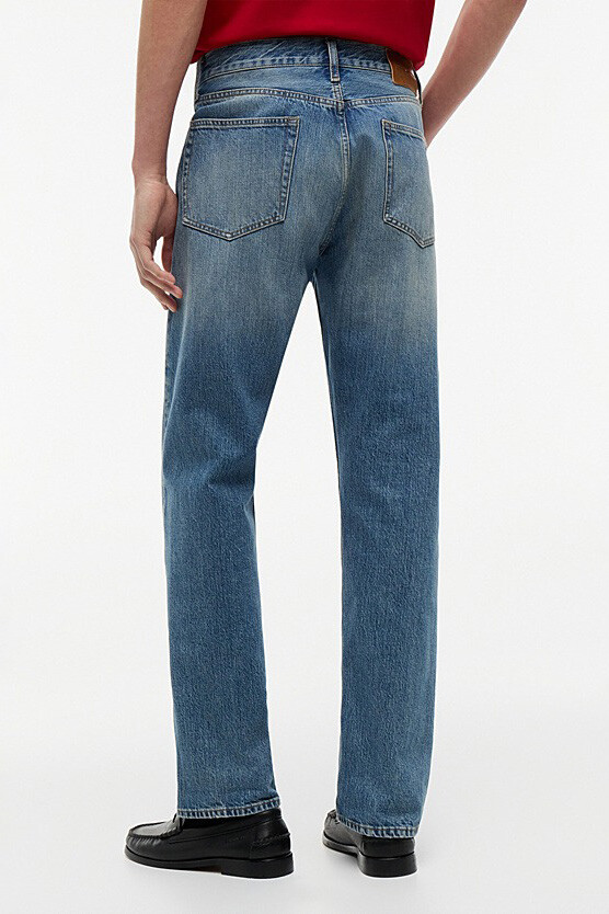 %100 pamuklu sert denim dokusu, klasik jean pantolonların dayanıklılığını ve otantik hissini günümüze taşır. Bacak boyunca düz inen rahat kesimi, hem hareket özgürlüğü sağlar hem de her vücut tipiyle uyumlu zamansız bir silüet oluşturur. Ön kısımdaki belirgin bıyık efektleri ve hafif ağartma detayları, tasarıma dinamik ve modern bir karakter kazandırır. Klasik beş cepli tasarımı ve fermuarlı kapama detayı ile günlük kullanım için ideal bir anahtar parçadır.