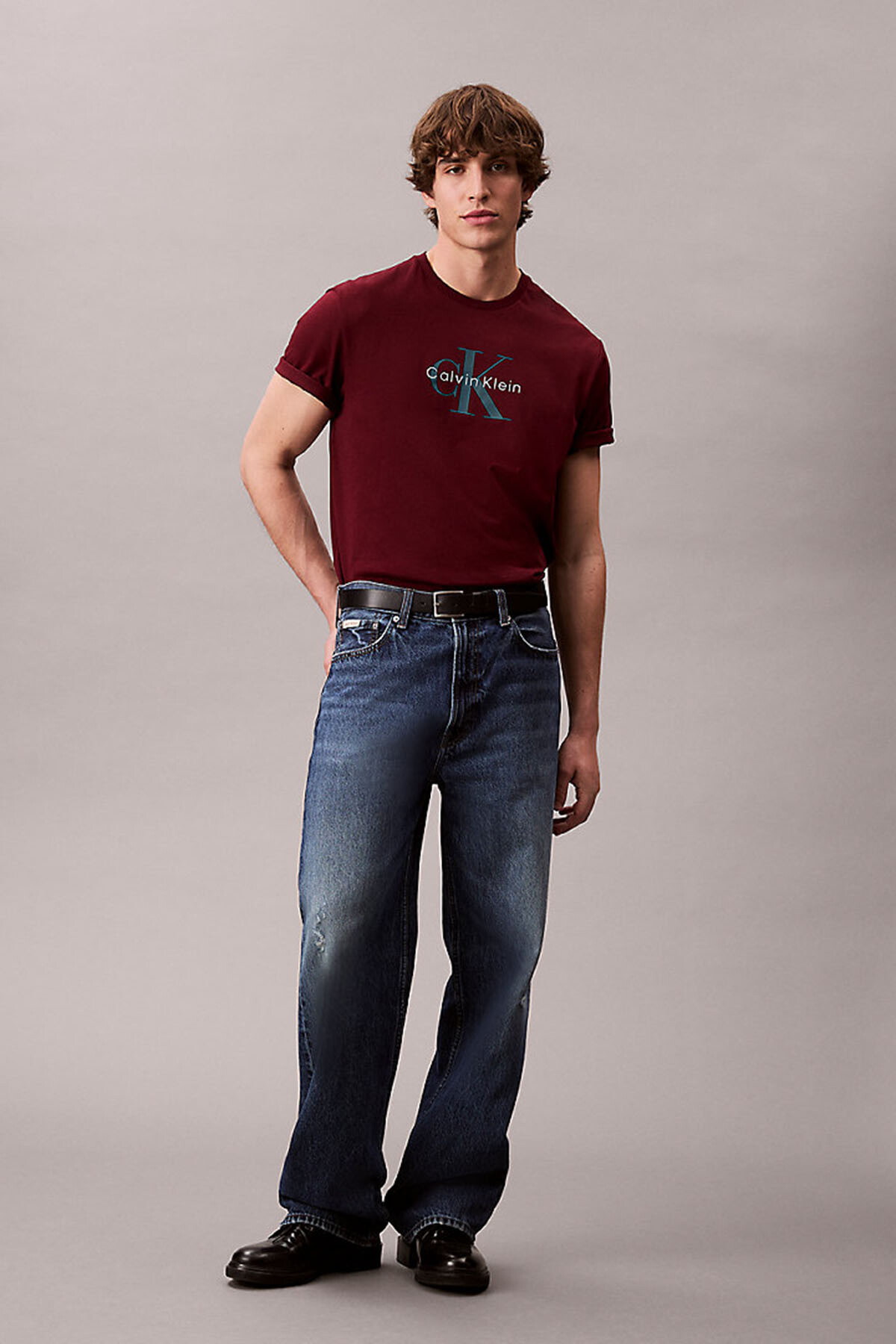 Erkek Bordo Pamuklu Regular Fit Logo Baskılı Tişört