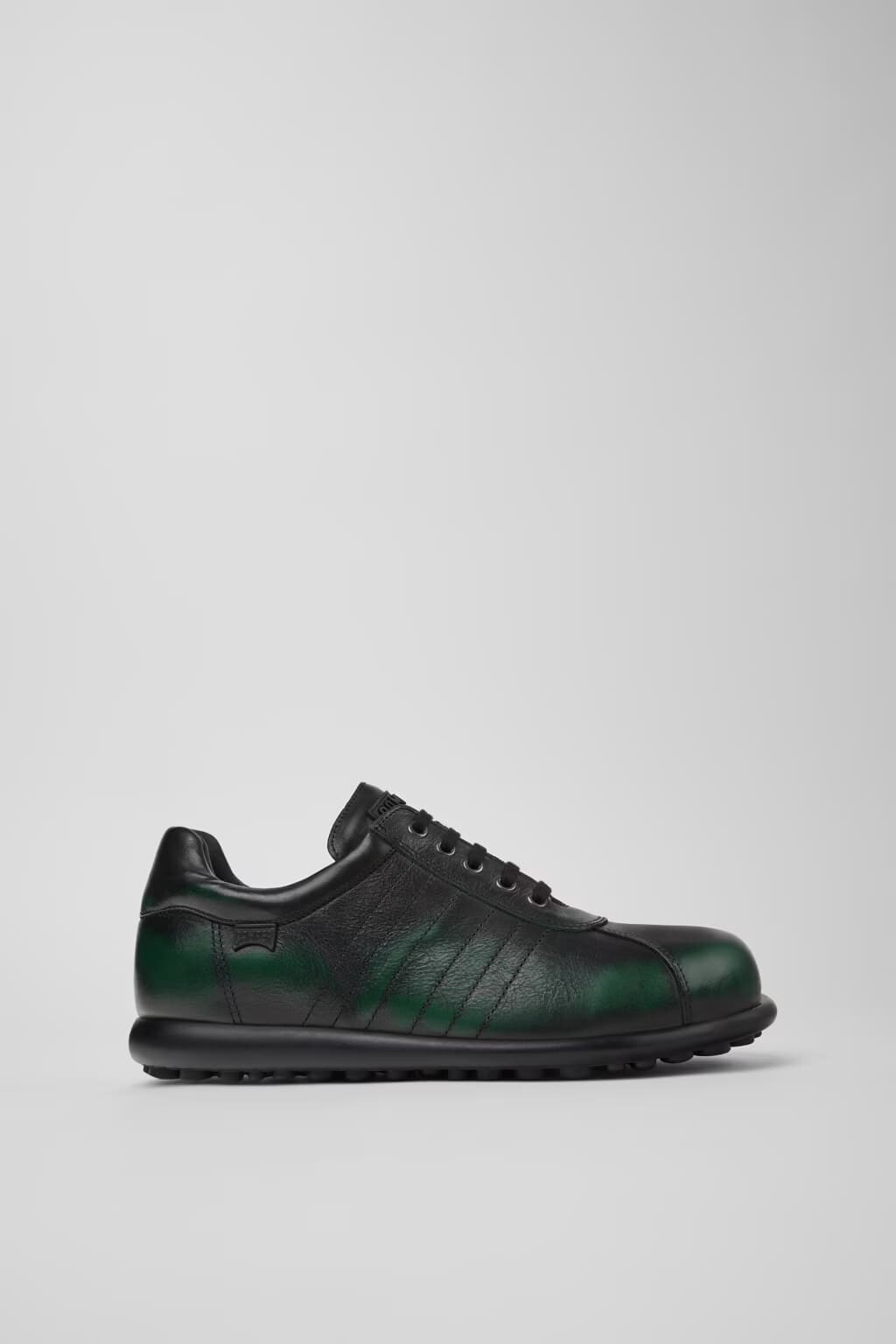 Zanaatkar bir dokunuşla öne çıkan bu ikonik sneaker, özgün ve stil sahibi bir görünüm sunar. %100 kaliteli inek derisinden üretilen üst kısmı, siyah ve yeşil arasında geçişler sunan özel fırçalanmış bir yüzeye sahiptir ve her bir çifte benzersiz bir karakter kazandırır. Büyük çoğunluğu deriden oluşan ve geri dönüştürülmüş polyester içeren astarı, gün boyu üstün konfor ve nefes alabilirlik sağlar. Yanlarındaki dikişli şerit detayları ve kendine özgü noktalı desenli dayanıklı kauçuk tabanıyla retro stilini tamamlar.