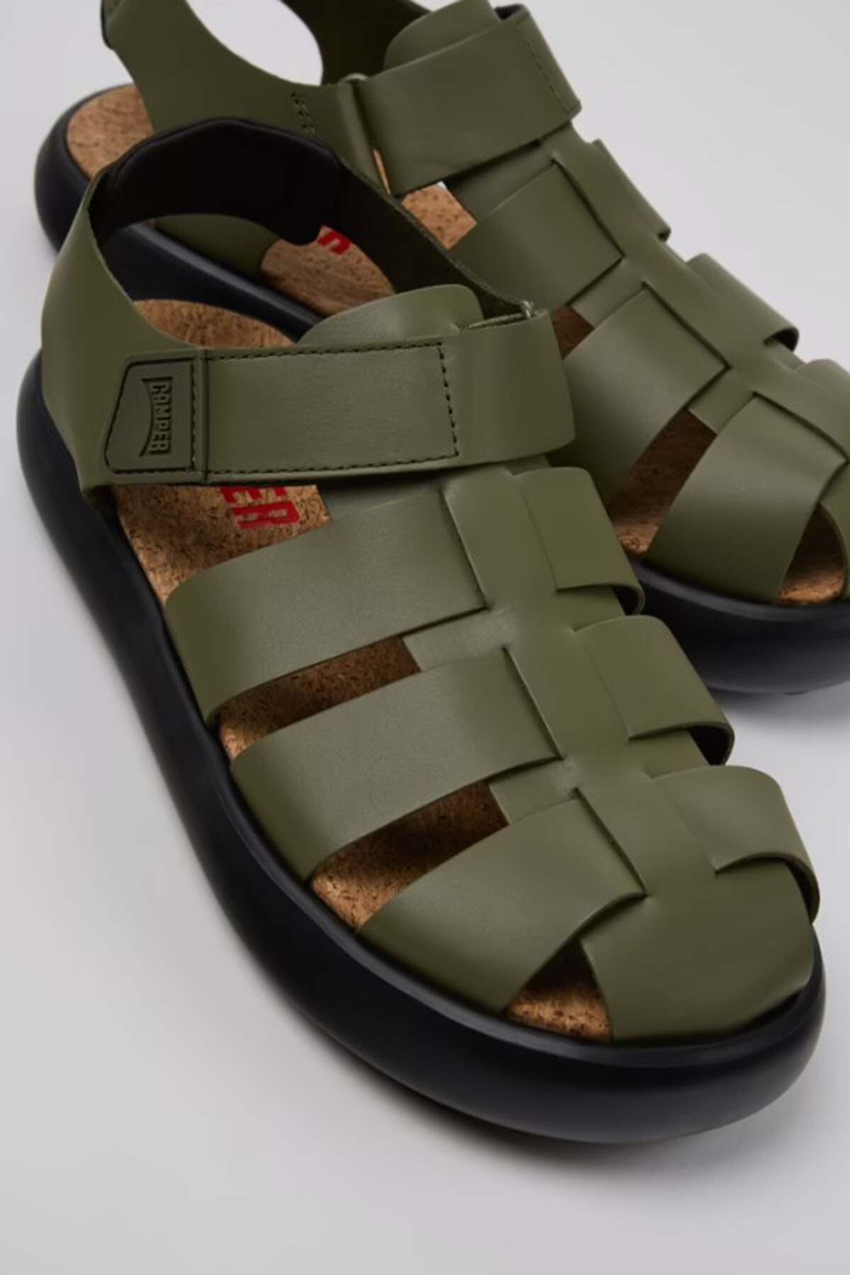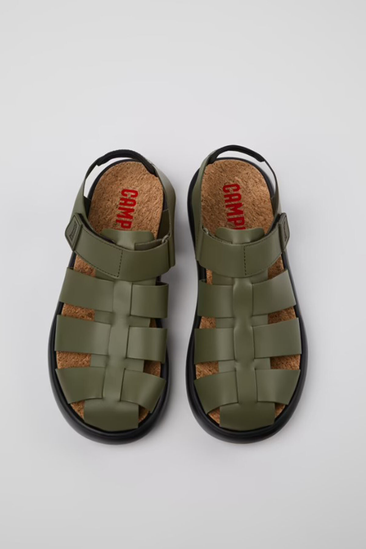 EVA tabanlı, cırt cırtlı sistemli ve XL EXTRALIGHT® OrganixTM 3.0 dış tabanlı (yüzde 30 biyodairesel bileşen) yeşil deri erkek sandaletleri.