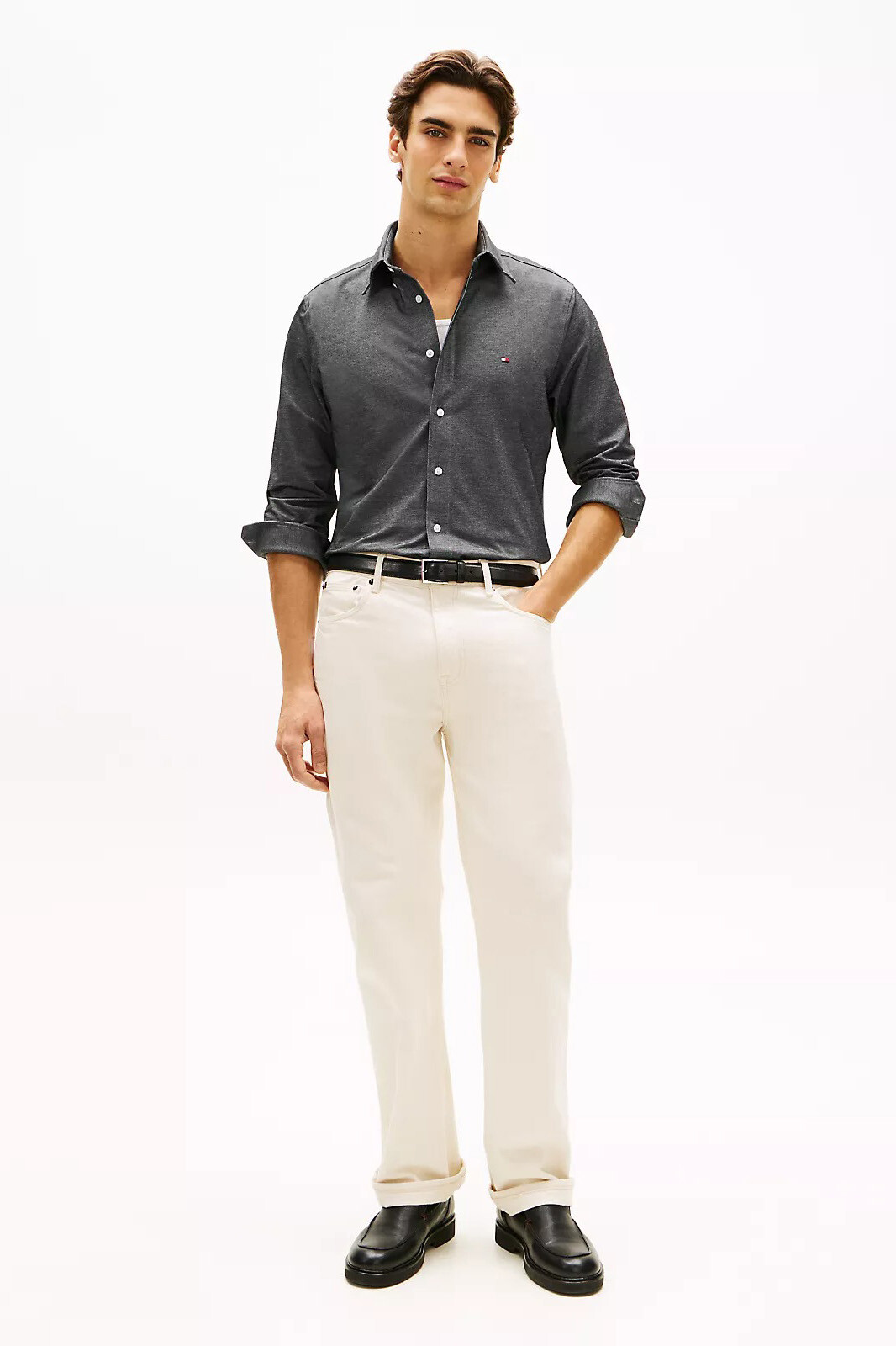 Siyahın asaletini, Performance serisinin yenilikçi kumaş teknolojisiyle buluşturan Performance Pique Oxford gömlek, klasik şıklığı hareket özgürlüğüyle yeniden tanımlıyor. Pamuk, polyester ve elastan karışımından oluşan özel dokusu; pamuğun yumuşaklığını, polyesterin dayanıklılığını ve elastanın sunduğu üstün esnekliği tek bir tasarımda sunuyor. Pike örgü yapısının kazandırdığı hafif melanjlı ve nefes alabilir yüzey, düz siyah renge derinlik katarak modern bir görünüm sağlıyor. Düğmeli yaka detayı ve göğüs üzerindeki minimal bayrak logosu ile tamamlanan model, konforlu ve standart bir oturuş vadediyor.