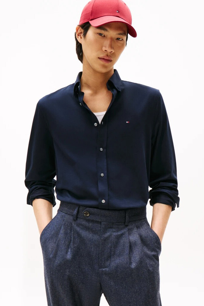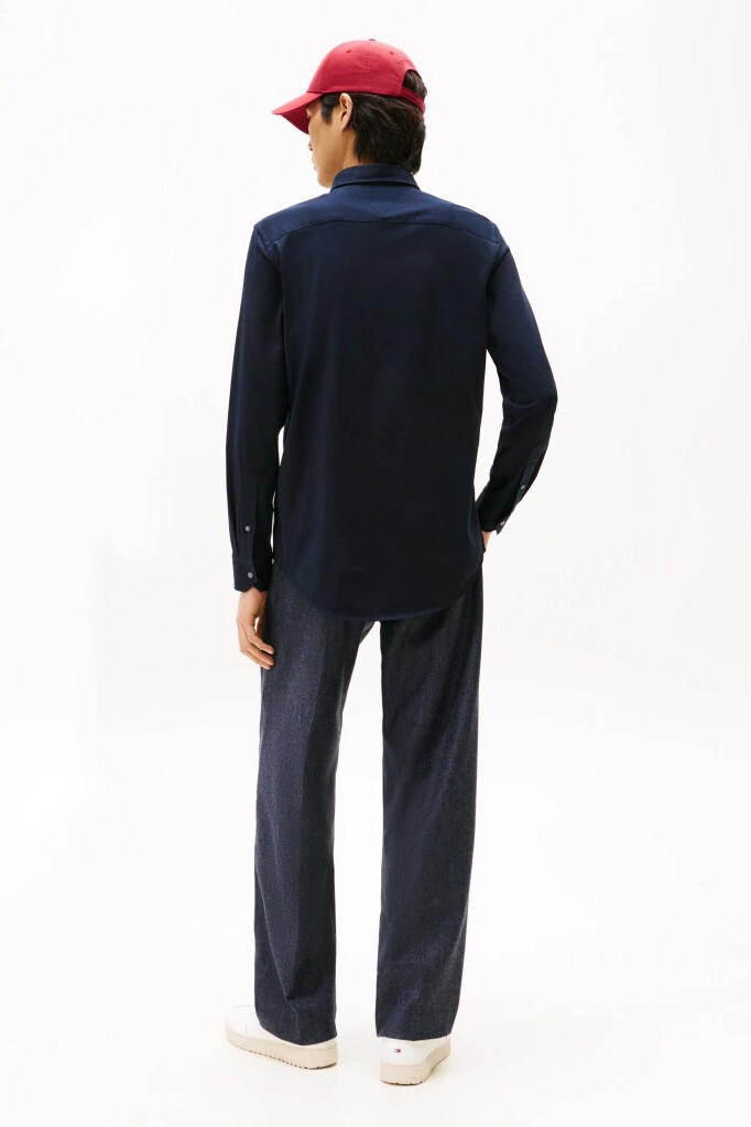%70 pamuk ve %30 polyester karışımlı özel teknolojik dokusuyla tasarlanan bu gömlek, yoğun iş günlerinizde kırışmaya karşı direnç göstererek gün boyu taze ve özenli bir görünüm sunar. Yumuşak pamuk hissini performans kumaşının dayanıklılığıyla buluşturan yapısı, cildinize nefes aldırırken hareket özgürlüğünüzü destekler. Vücut hatlarını dengeli bir şekilde saran tam kalıbı ve modern düğmeli yaka detayı, hem kravatlı ofis kombinlerinde hem de daha rahat smart casual stillerde çok yönlü bir kullanım vadeder. Sol göğüs üzerindeki minimal logo nakışı, koyu renkli sade zemine zarif bir dokunuş ekler.